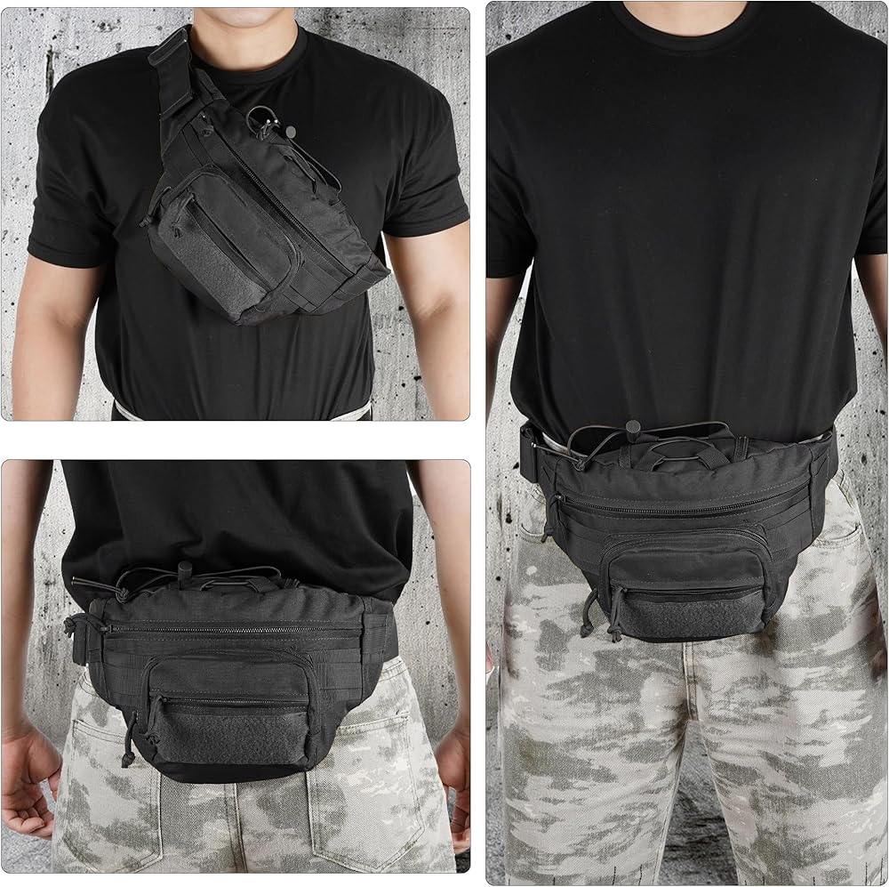 [مواد حزمة فاني الصيد]: حقيبة الخصر العسكرية مصنوعة من مادة نسيج أكسفورد 900D، وهي مقاومة للرطوبة قوية ومتينة