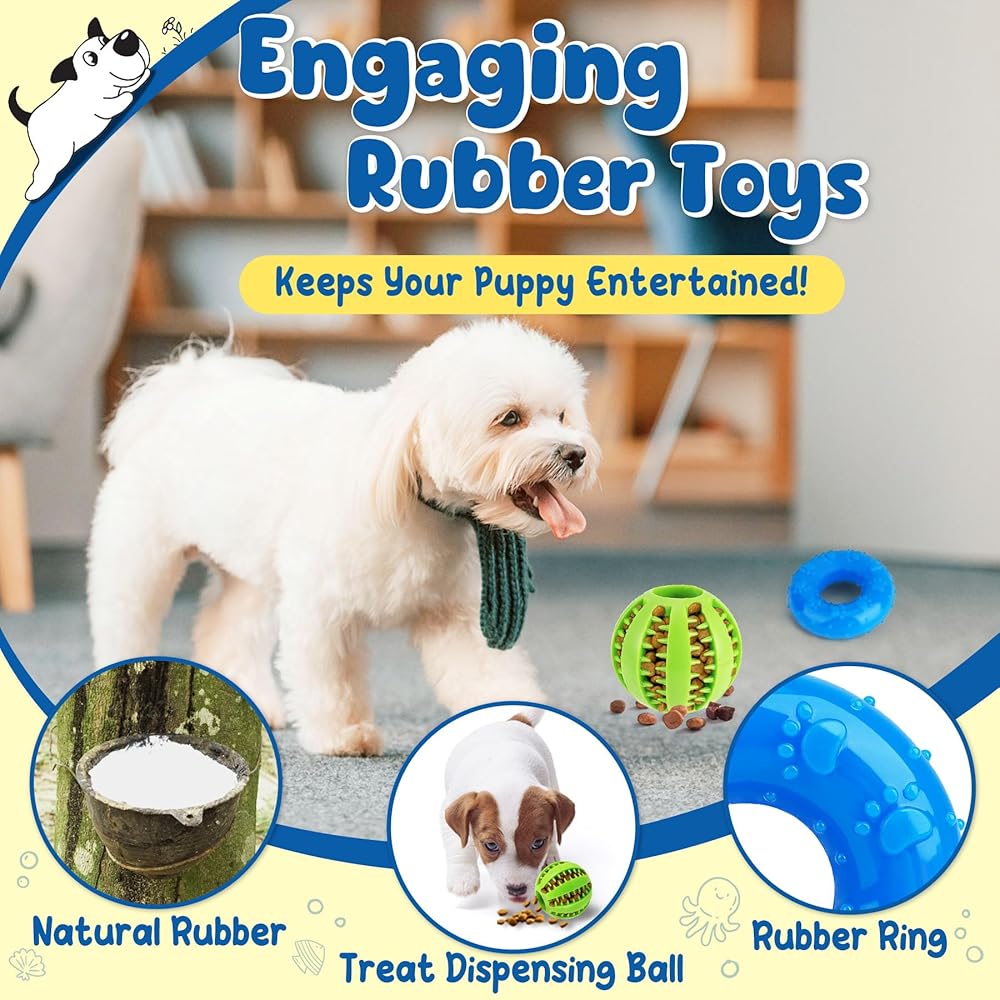 مجموعة ألعاب متنوعة: تتميز مجموعة الألعاب المكونة من 9 قطع بلعبة ساحرة على شكل أخطبوط، وحبلين متينين، ولعبتين من القطيفة تصدران أصواتًا، وحلقة مطاطية واحدة، وكرة حلوى واحدة، وحقيبتين للكلاب، لتلبية اهتمامات واحتياجات الكلاب التي تحافظ على بقاءها. منهم مشغولون وفضوليون
