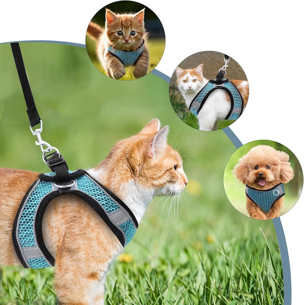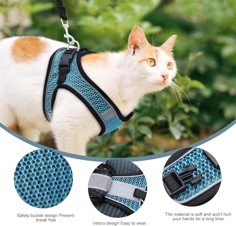 شبكة مسامية للصيف: صدرية قابلة للتعديل للقطط مصنوعة من شبكة ناعمة وجيدة التهوية، مثالية للمشي في الصيف الحار. حزام الصدر مزود بحلقة على شكل حرف D على الجانب، والتي يمكن استخدامها لتعليق معرف الحيوان الأليف أو ملحقه، مما يمنع كلبك من الضياع.