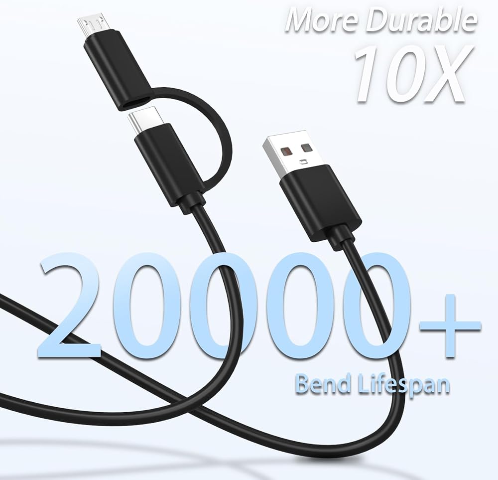 • Compact Designs: 2in1 charging cord is equivalent to 2 data cables, one cable has 2 different ports (USB C & Micro USB), not only saves money but also saves resources
