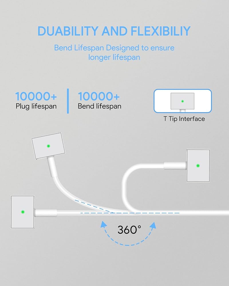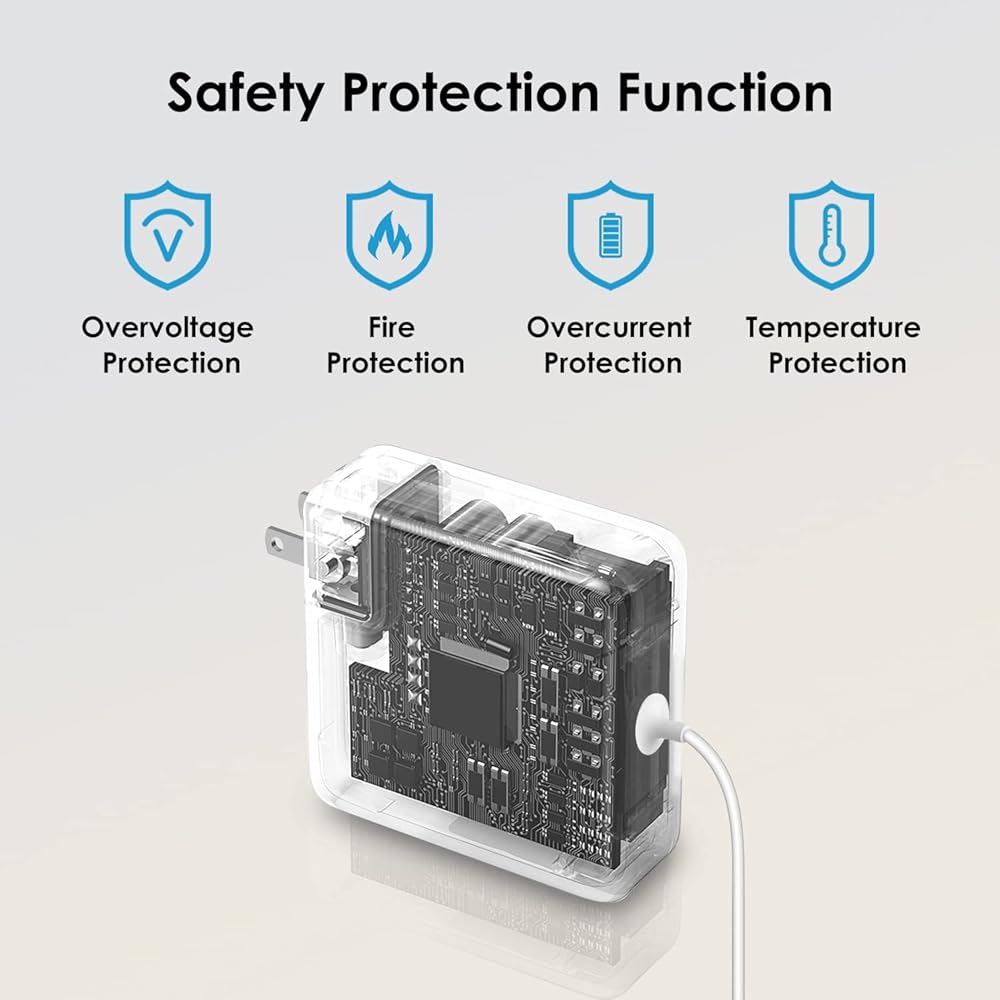 ▲السلامة والموثوقية: كل أجهزة شاحن Qiyezinuo mac pro مصنوعة من مواد عالية الجودة، ويمكنها شحن جهازك بكفاءة مثل الشاحن الأصلي. توفر تقنية رقاقة IC المدمجة حماية من التيار الزائد والحرارة الزائدة وقصر الدائرة والحمل الزائد. معتمد بمعيار UL/CE/FCC/RoHS. الكابل مصنوع من مادة TPE عالية القوة ومضادة للاحتكاك، ويتصل الموصل وجسم السلك بشكل مثالي. لقد تم اختباره مثل الانحناء والشد عالي القوة، وليس من السهل أن يتآكل ومقاوم للتآكل.