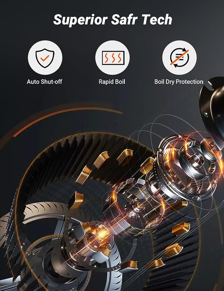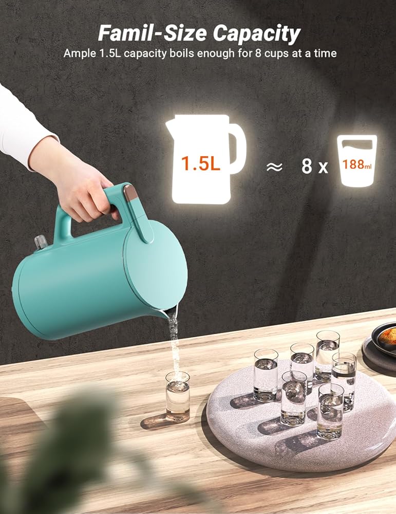 • 1500W Quick Boil: Bring 1.5 L of water to a rolling boil in 5 minutes and know exactly when your water is ready with a red LED indicator. Reminds you to prepare hot tea, coffee, or instant soup.