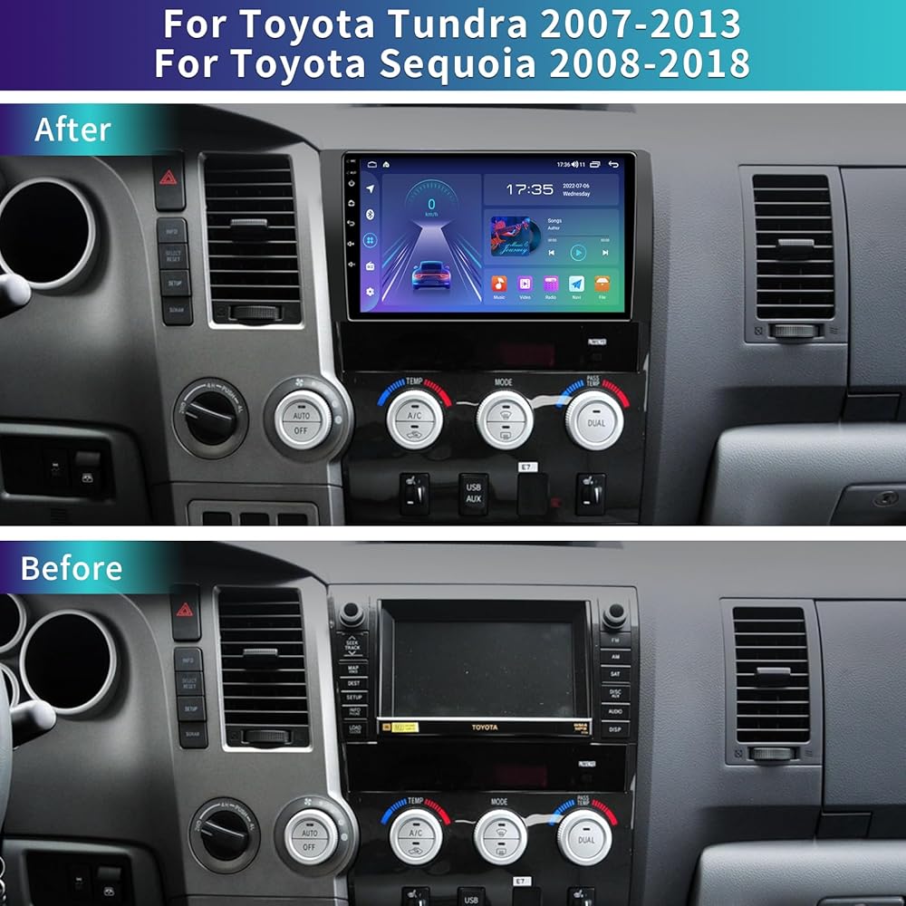 🚗[ستيريو سيارة أندرويد لتويوتا تندرا/سيكويا] لتويوتا تندرا 2007 2008 2009 2010 2011 2012 2013/ لتويوتا سيكويا 2008 2009 2010 2011 2012 2013 2014 2015 2016 2017 راديو 2018، جميع الكابلات اللازمة متوفرة، سهل التركيب، لا حاجة لقطع الكابلات. مجهزة بـ Canbus لدعم أدوات التحكم الأصلية في عجلة القيادة، وكاميرا عكسية AHD، وما إلى ذلك.