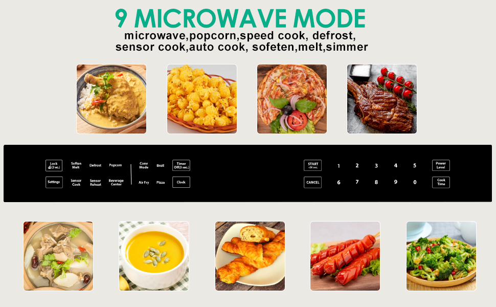 • 🍞أوضاع طهي متعددة الاستخدامات🍞: يتميز فرن الميكروويف الحراري هذا بميكروويف قوي 950 واط وأوضاع الحمل الحراري، مما يوفر وظائف طهي متعددة بما في ذلك مقلاة الهواء، والفشار، والطهي السريع، وإزالة الجليد، والطهي بالمستشعر، والطهي البطيء لتلبية جميع احتياجاتك.
