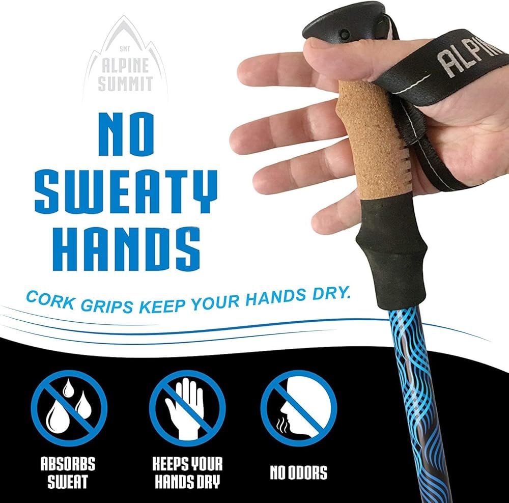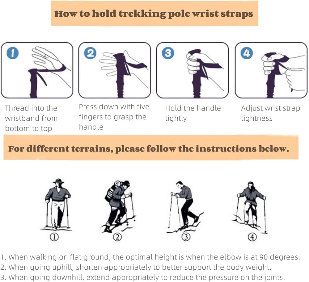 【آلية القفل السريع】مصممة مع وضع التضاريس الوعرة في الاعتبار. تتميز أقطاب الرحلات خفيفة الوزن الخاصة بنا للمشي لمسافات طويلة بنظام القفل السريع بمقابض مريحة من الفلين وحلقة يد قابلة للتعديل لتوفير أقصى قدر من الراحة والثبات.