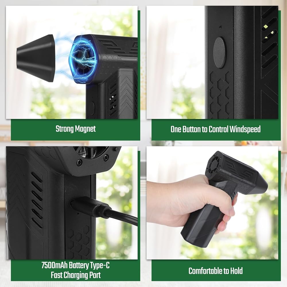 منفاخ هواء مضغوط Laelr 130000 دورة في الدقيقة منفضة هواء كهربائية 3 تروس منفاخ هواء جاف قابل للتعديل 7500 مللي أمبير في الساعة مروحة توربو قابلة للشحن مروحة نفاثة للسيارة سرير الهواء الجاف المنزل في الهواء الطلق لوحة المفاتيح تنظيف الكمبيوتر
