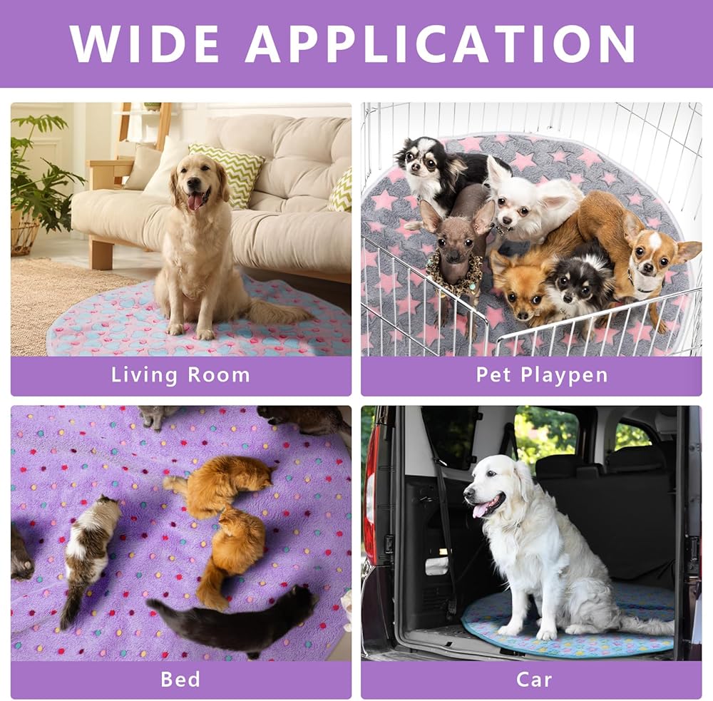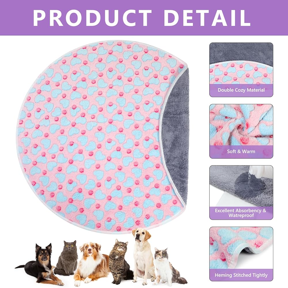 Convenient to Clean: these circular large washable pee pads for dogs are durable and long lasting, multiple washes, adopting coral velvet material; Puppy training pads can be washed by hands or machine with cold water and dried at low temperature, and pet hair on blankets can be easily thrown off, saving your time and effort for cleaning up