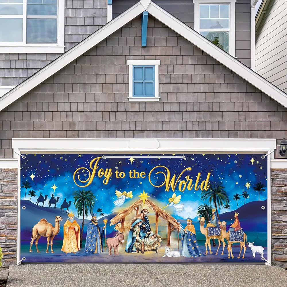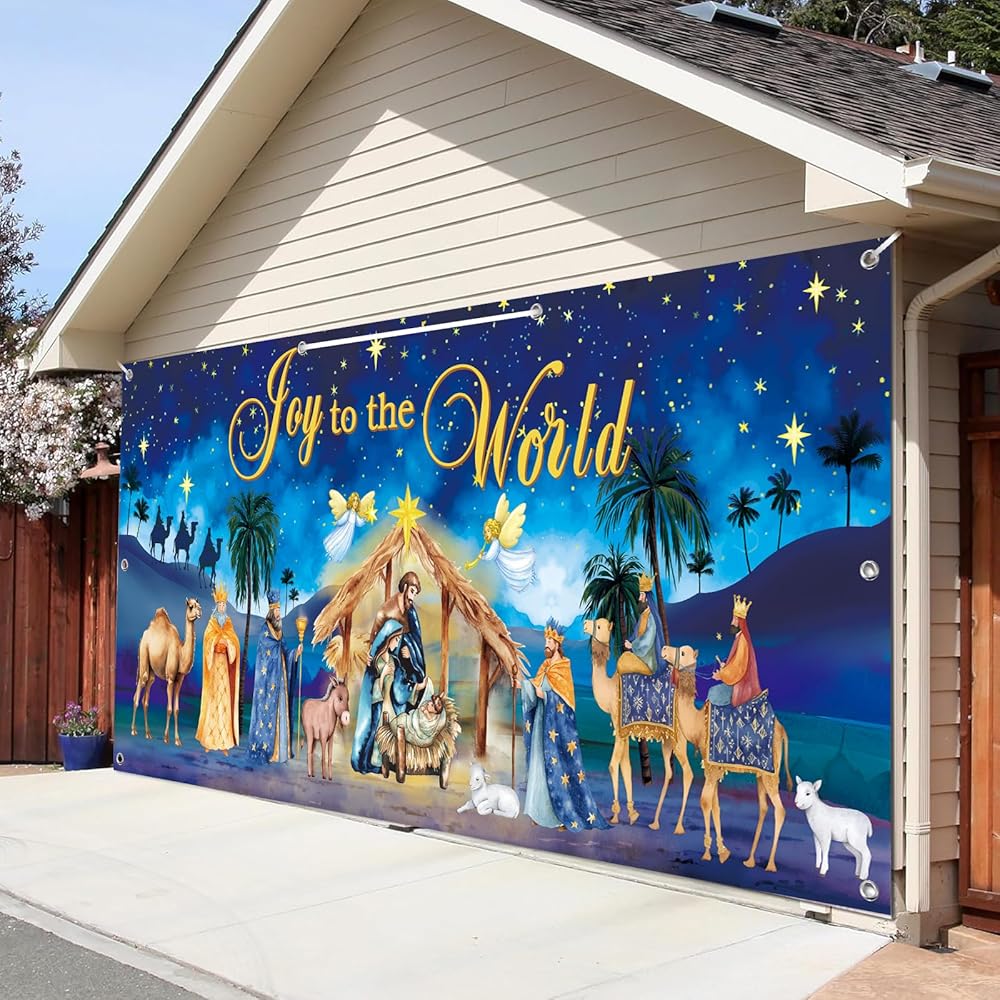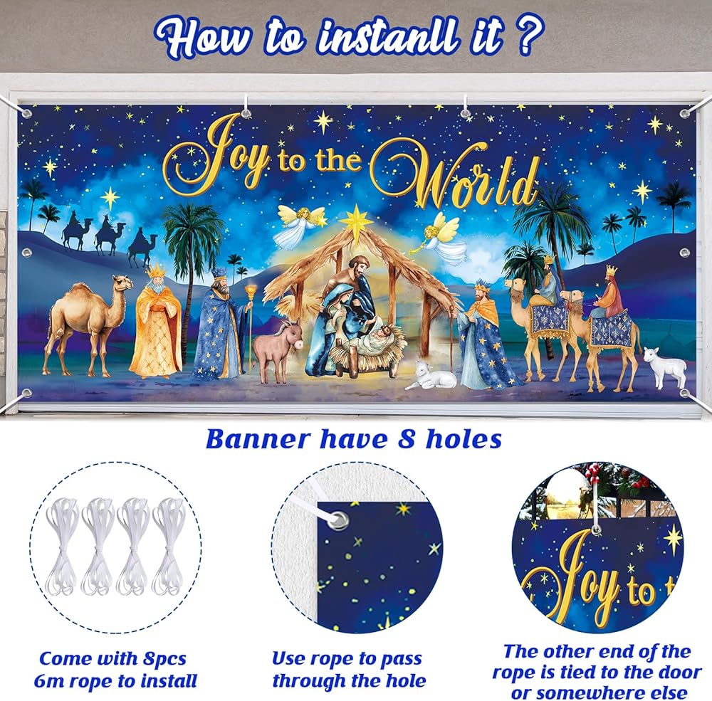 Package include:you will get 1 piece of Christmas nativity scene JOY to the world garage door backdrop with 8pcsx 6M strings,it's printed with eye-catching details and lifelike colors,making you and your guest at the party impressive