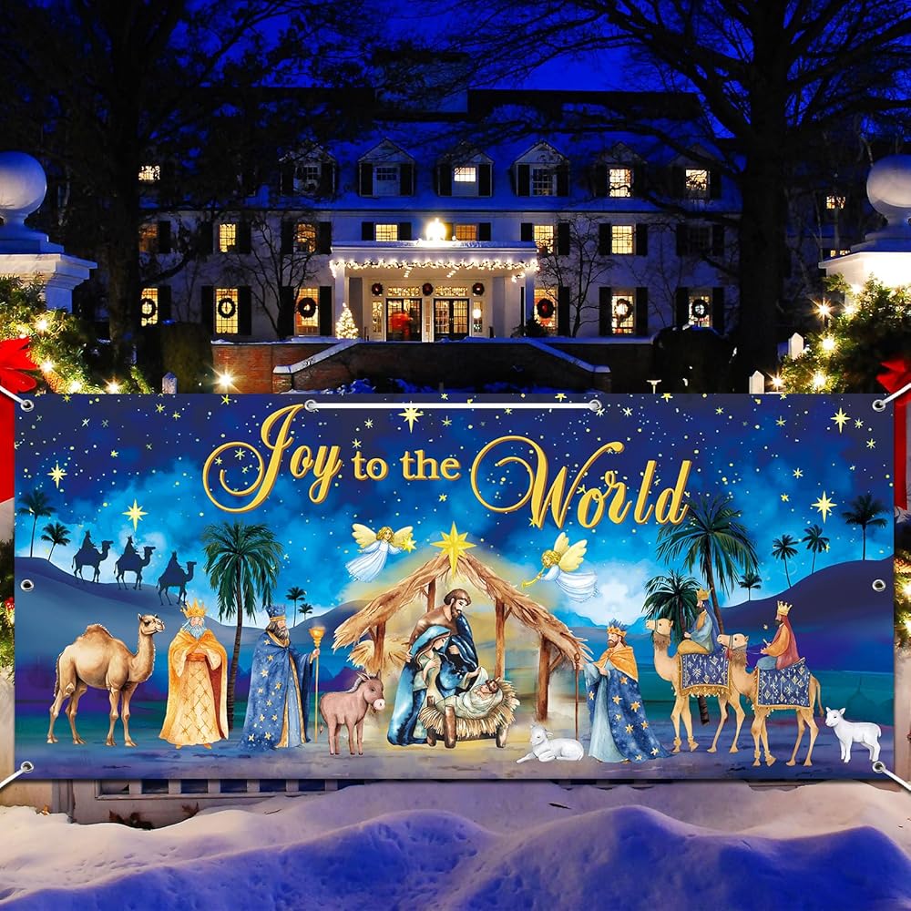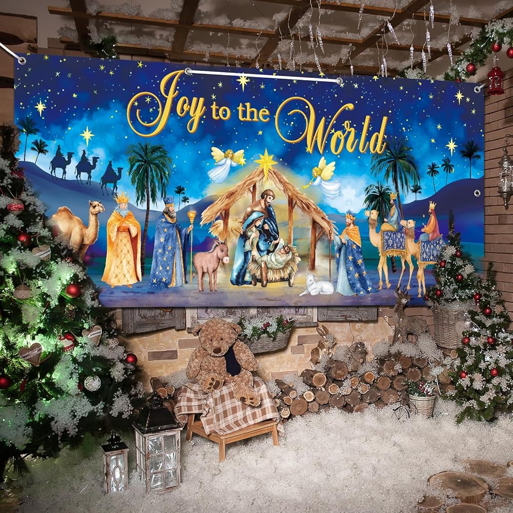 Design for Christmas Nativity party: our Christmas Nativity scene banner sets are design with a sign of JOY TO THE WORLD,a scene of Jesus' birthday,the print is very realistic, as if it brings you into the scene to reminder of the true meaning of Christmas,using it as your photography background makes people like being there