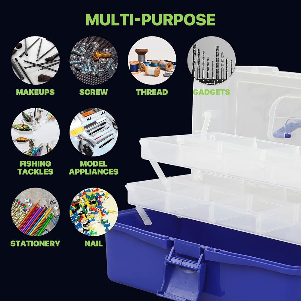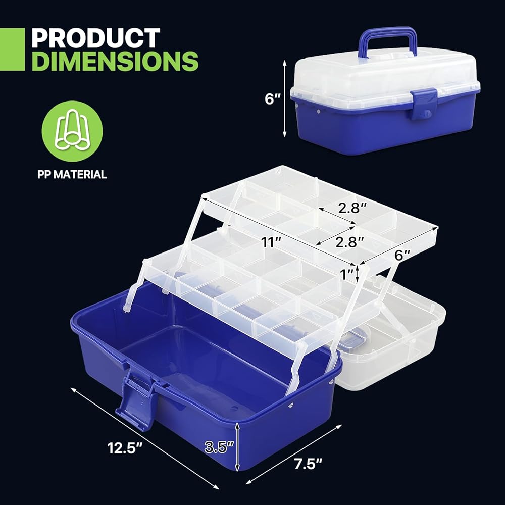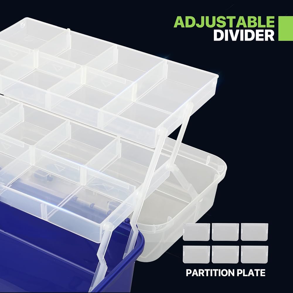 • Multi-Layer Organization: Equipped with a three-layer design, this fishing box includes two removable trays with compartments, offering exceptional storage capacity and organization for a variety of items