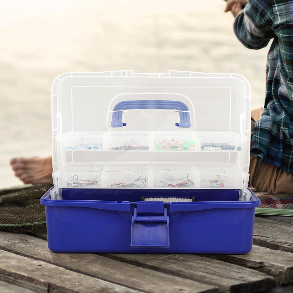 صندوق أدوات صيد السمك المحمول من 3 طبقات من Magshion مع مقبض، صندوق أدوات منظم تخزين بلاستيكي مقاوم للماء مع فواصل قابلة للتعديل للأجهزة والخرز والحرف الفنية والخياطة (12.5 بوصة، أزرق)