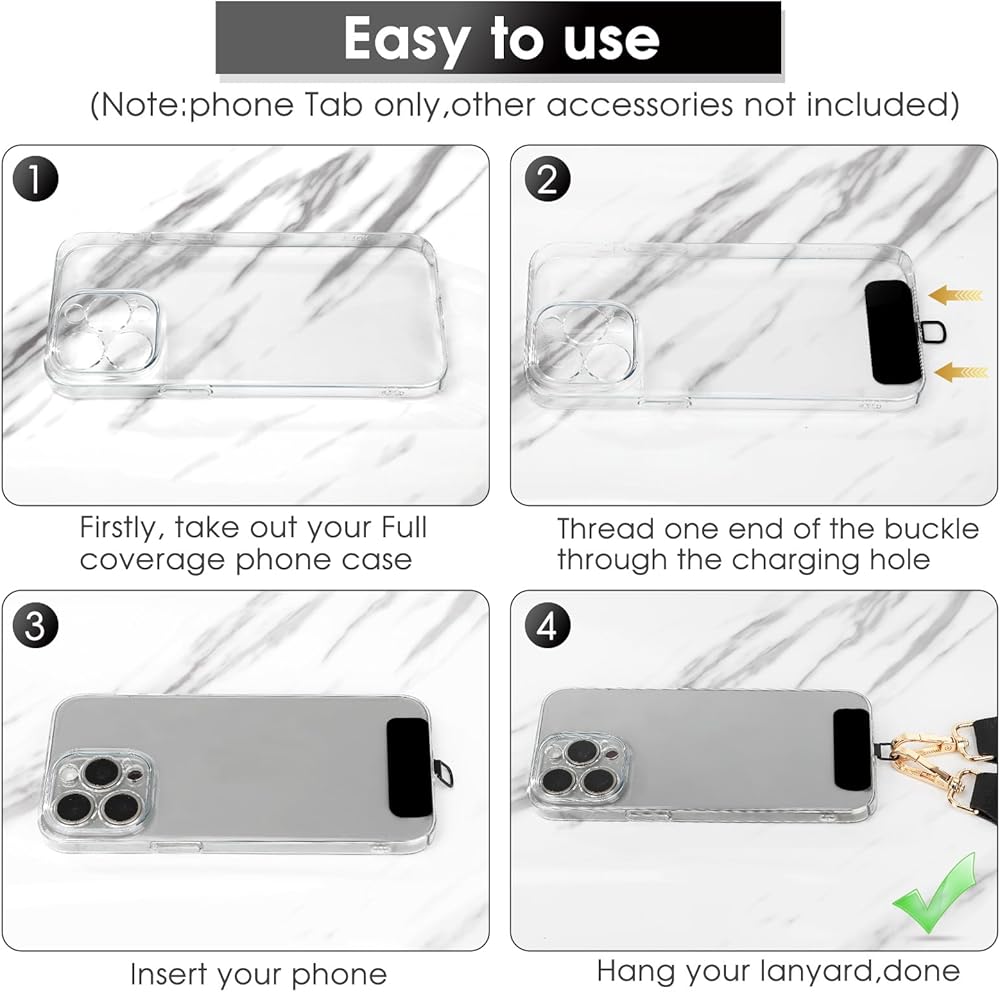 【رقعة حبل للهاتف - أبيض وأسود】تم تجهيز حبل الهاتف المحمول الخاص بنا برقعتين من الألوان - الأبيض والأسود، مما يوفر للمستخدمين المزيد من الخيارات. الرقعة مصنوعة من مادة الفولاذ المقاوم للصدأ عالية الجودة، وهي أكثر موثوقية ومتانة. التصحيح مناسب لمعظم الهواتف الذكية. يتطلب حبل الهاتف المحمول حافظة هاتف محمول ذات غطاء سفلي كامل. بخلاف ذلك، لا يمكن تعليق حبل الهاتف المحمول بشكل ثابت على الهاتف المحمول