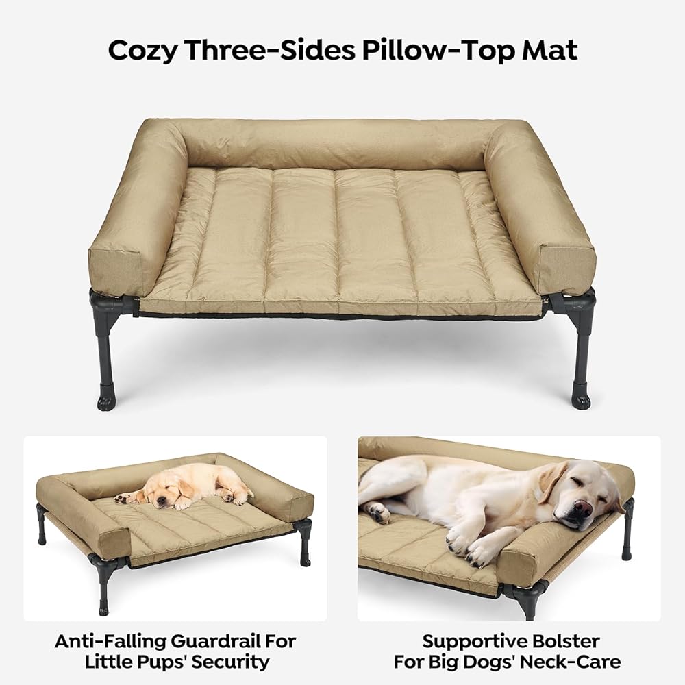 سرير الحيوانات الأليفة المرتفع الكبير جدًا: يبلغ مقاس إطار سرير الكلاب 49 بوصة × 33 بوصة × 9 بوصة (125 × 83 × 22.5 سم)، ويدعم ما يصل إلى 150 رطلاً (68 كجم). مثالي للكلاب البالغة العادية من فصيلة الراعي الألماني، والمسترد الذهبي، وفصيلة روتويللر، والملاكمين، وكلاب الهاسكي، الدنماركيون العظماء وما إلى ذلك.