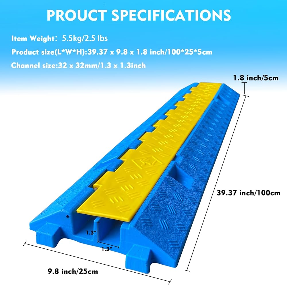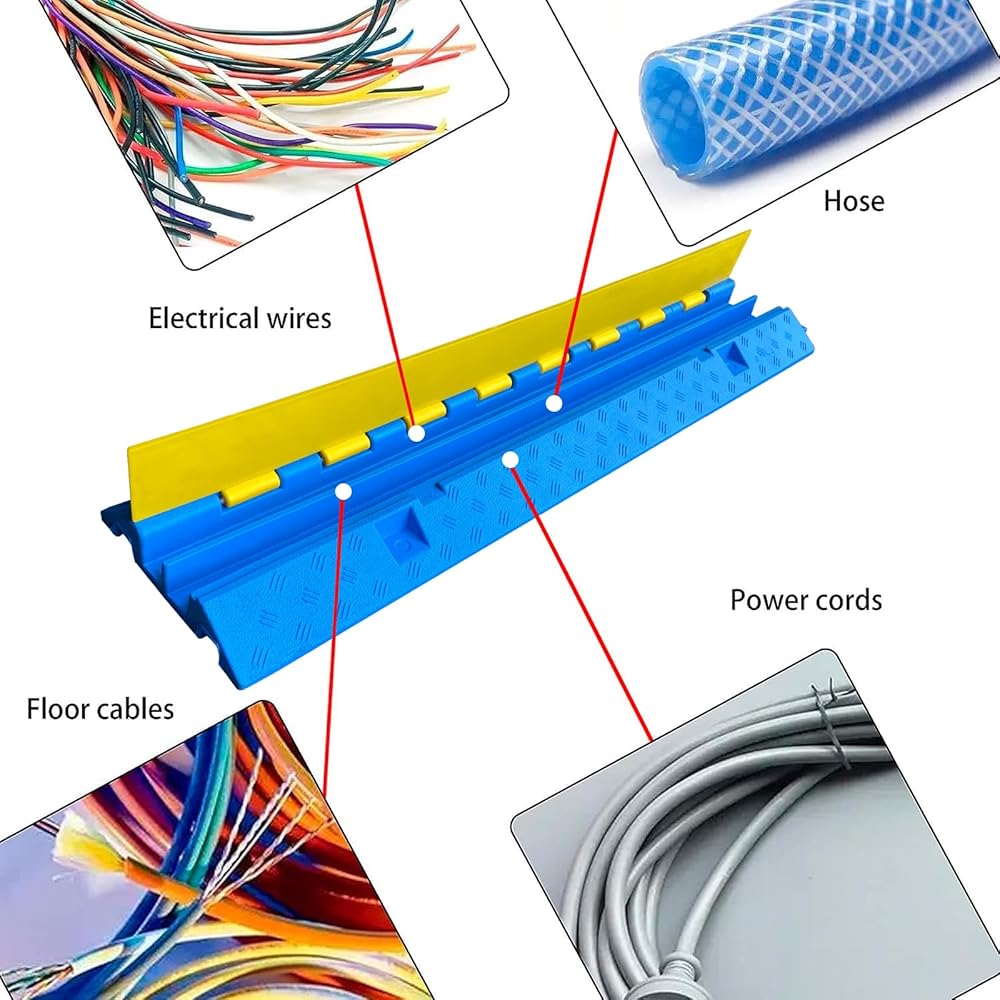 [حماية متعددة الاستخدامات]: توفر واقيات الكابلات المطاطية الزرقاء الزاهية تصميمًا ثنائي القناة لحماية الحبال والأسلاك والخراطيم من حركة القدم وعجلات المركبات.