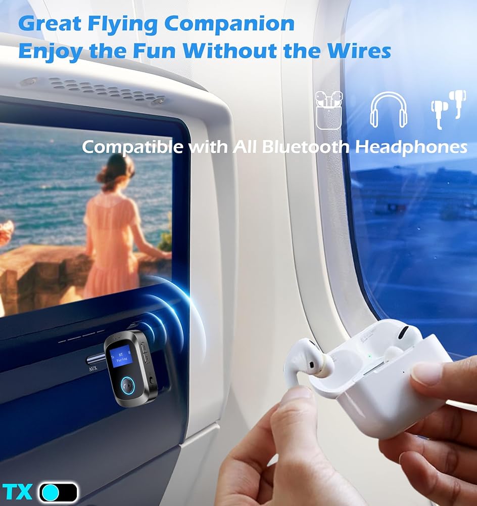 مستقبل إرسال بلوتوث 5.3، محول بلوتوث للطائرة لسماعات الرأس، محول بلوتوث AUX من KAIY لموسيقى السيارة، جهاز إرسال بلوتوث للتلفزيون، محول بلوتوث لجهاز استقبال الاستريو