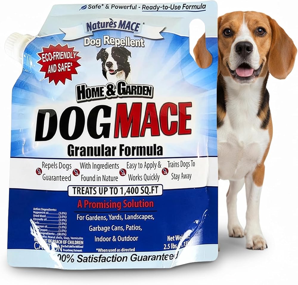 2.5 رطل. حبيبي: من السهل تطبيق طارد الكلاب الحبيبي من Nature's MACE ويغطي مساحة تصل إلى 1400 قدم مربع. وهو يساعد على منع الكلاب من الحفر والتفتيش والتبول والتغوط والتسبب في أضرار أخرى. استخدمه لحماية أواني الزهور والمهاد والأسرة الصخرية والحدائق والمروج والمناظر الطبيعية والشجيرات والأشجار والباحات والأسوار والمؤسسات ومناطق القمامة وغيرها من المساحات المعالجة. إنه الأفضل لحماية مناطق معينة من نشاط الكلاب. يساعد على إبعاد الكلاب عن أسرة الزهور.