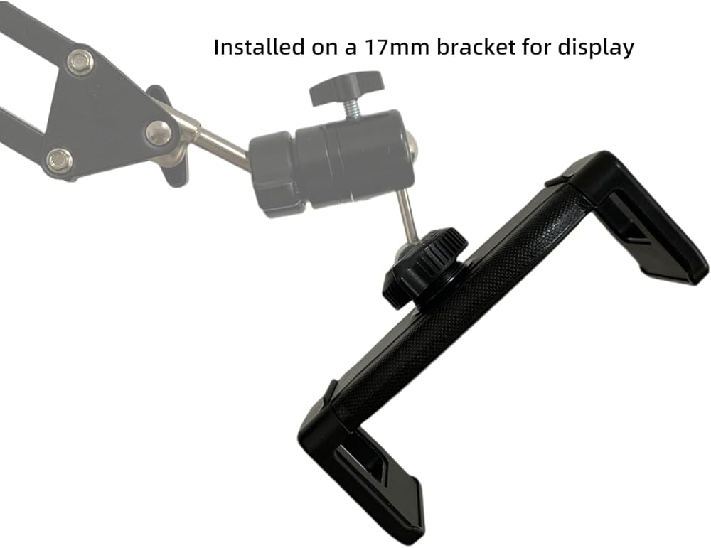 Brand new ABS plastic injection molding, ultrasonic welding process, metal stretching support rod, sturdy and sturdy. Enlarged and thickened, it can hold tablets under 15 inches and thick phones with shells 17mm ball joint interface, suitable for desktop bracket with spherical interface, mechanical cantilever bracket, lazy goose neck bracket, bedside bracket The maximum clamping stretch is 26cm, the minimum clamping stretch is 13cm, and the thickness can be clamped 3.5cm Beauty equipment with a width not exceeding 26 centimeters, beauty lamps, beauty devices, and some sound card control devices that can be clamped