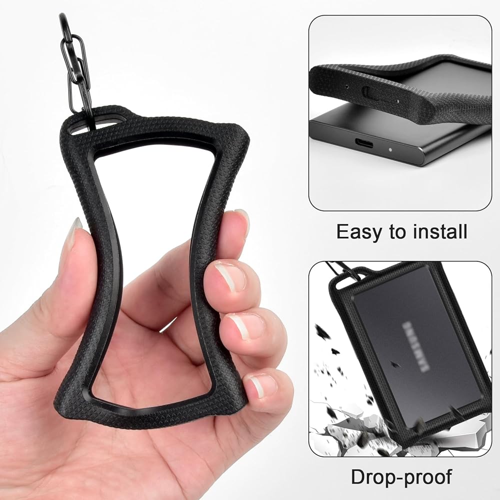 غطاء ناعم لجهاز samsung t7 ssd: يأتي غطاء t7 Shield 1tb مع حلقة تسلق، يمكنك توصيل أحد طرفي حلقة التثبيت لجهاز samsung t7 touch، والطرف الآخر لتعليقه على حقيبتك، وحقيبة الظهر، وأخذها معك رحلات العمل والسفر وما إلى ذلك