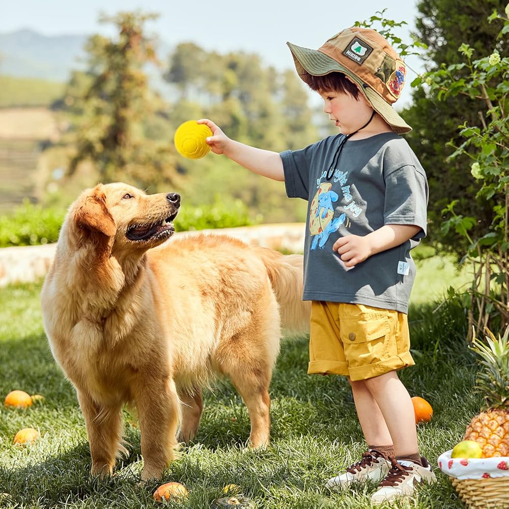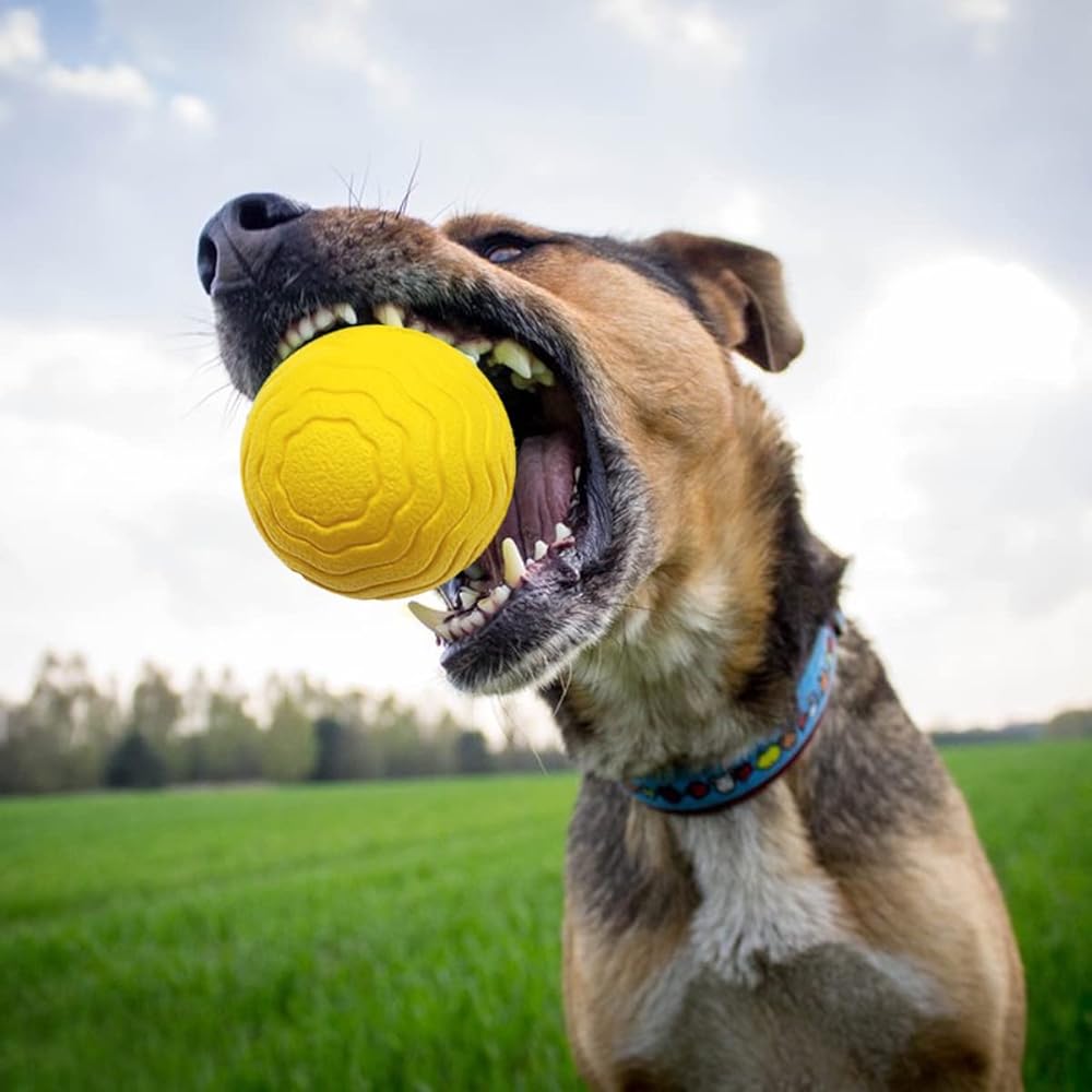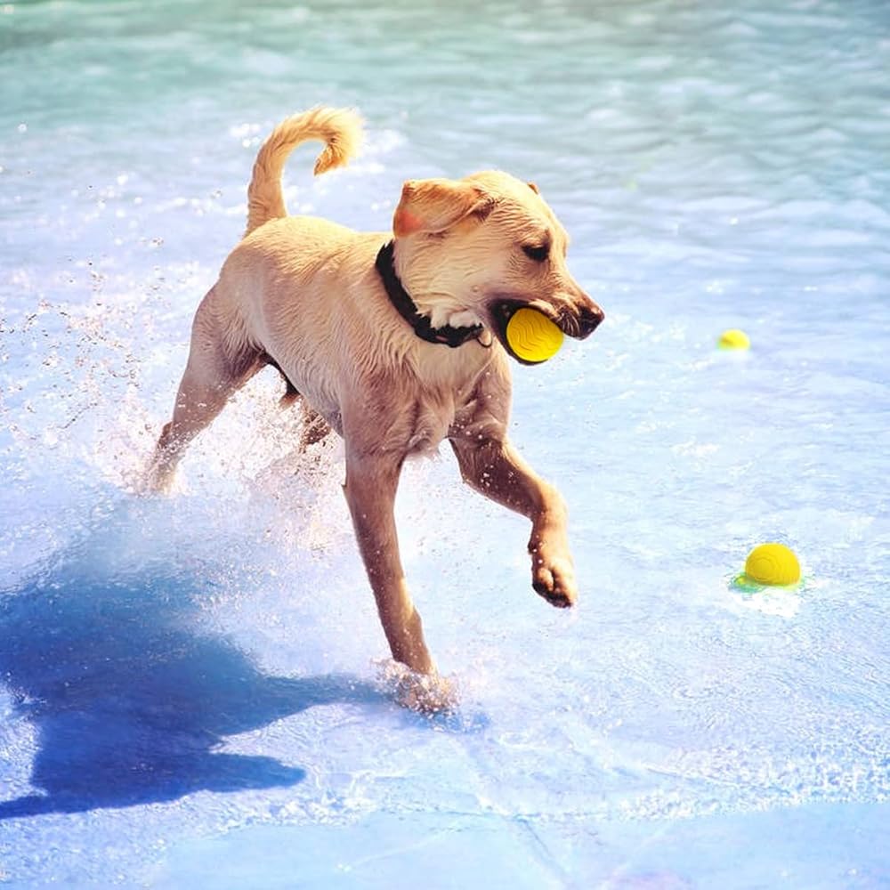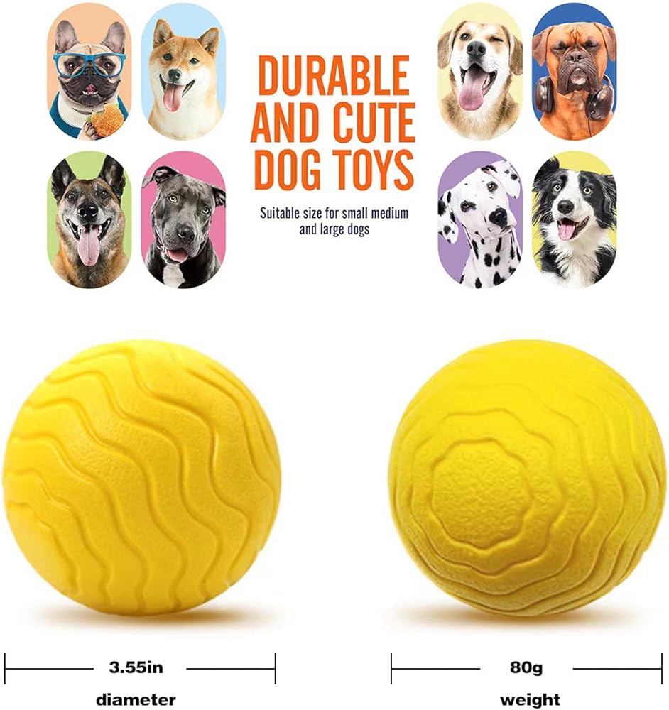 The bright yellow can catch your dogs' attention easily.Interactive Dog Ball Almost Indestructible High quality made of soft EVA material, nontoxic, durable to be chewed, elastic, soft. The dog ball interactivity between you and your dogs, floats in water and great bounce. Strong dog ball allow you to play games and promote relationships with your pet. Relieve the anxiety and boring of pets and let it stop biting your shoes or other items in your home. Features: Ball Diameter: 3.55 inch/9 cm. Package include: 2Pcs Dog Ball We recommend your pet play these toys under your supervise. Wash the toys set regularly.