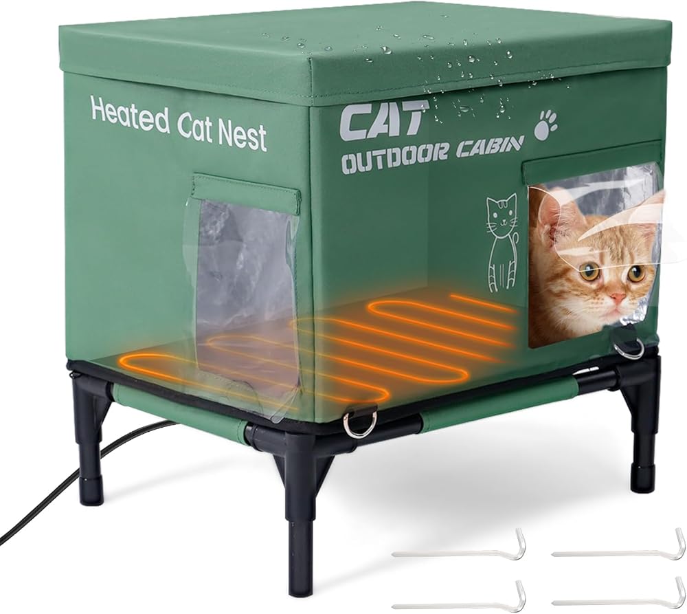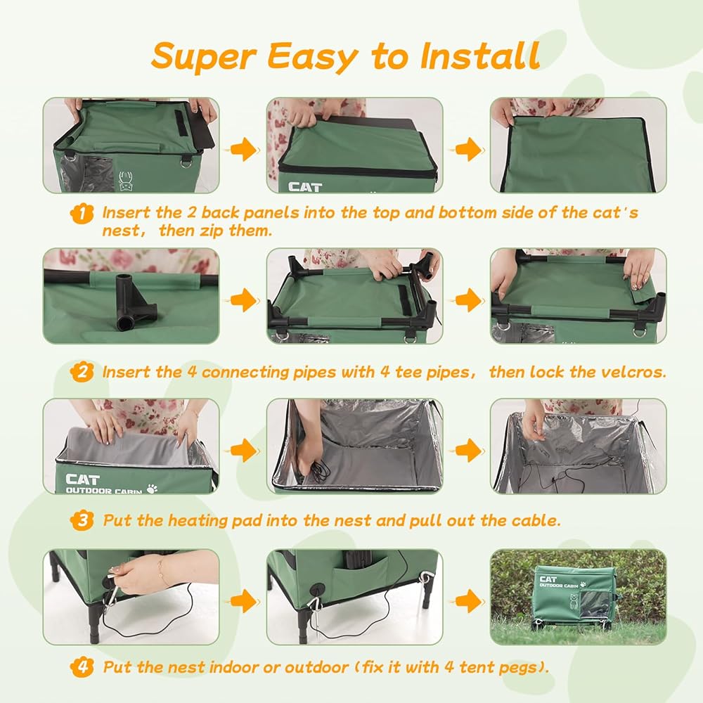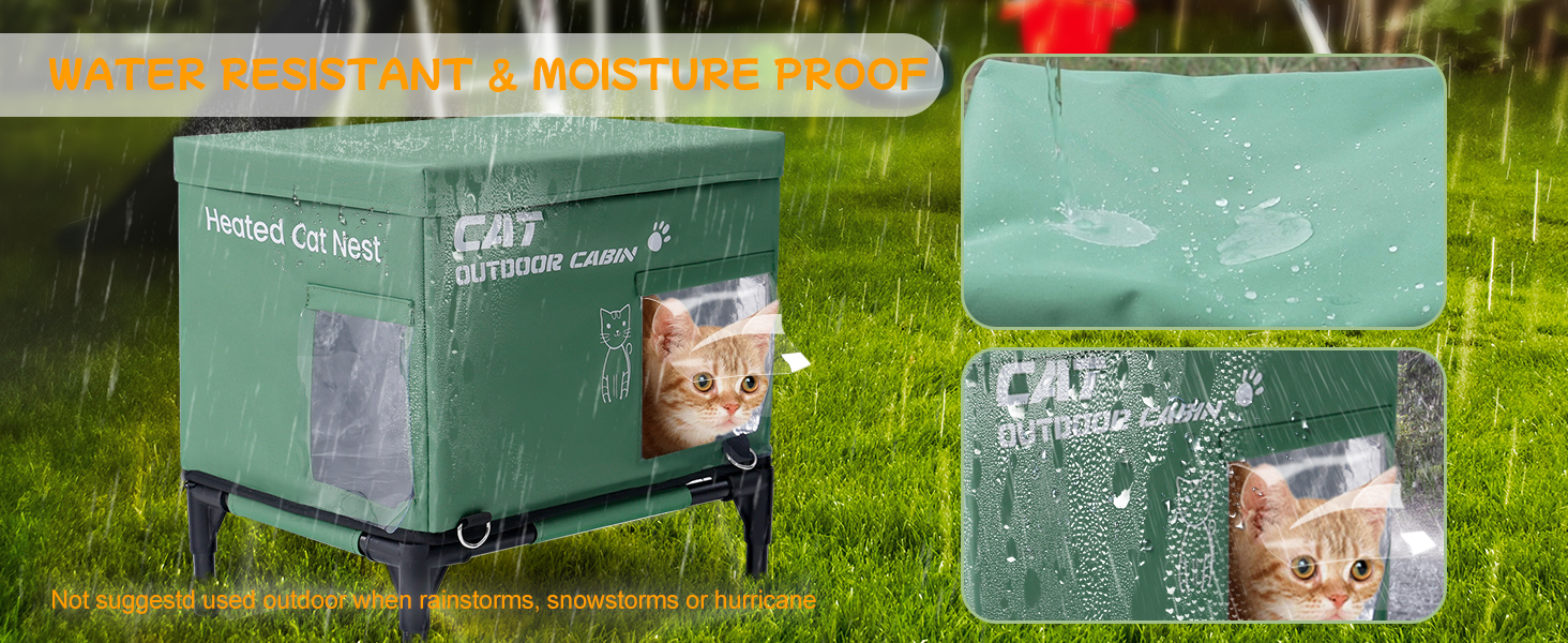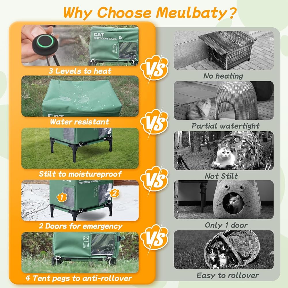 تصميم مقاوم للماء وأرضية ثابتة: مصنوع من قماش أكسفورد المتين 600D، توفر مسكن القطط Meulbaty مقاومة للأمطار الخفيفة والضباب. قاعدتها المرتكزة على أربعة أنابيب تحمي المنزل من الرطوبة والظروف الرطبة