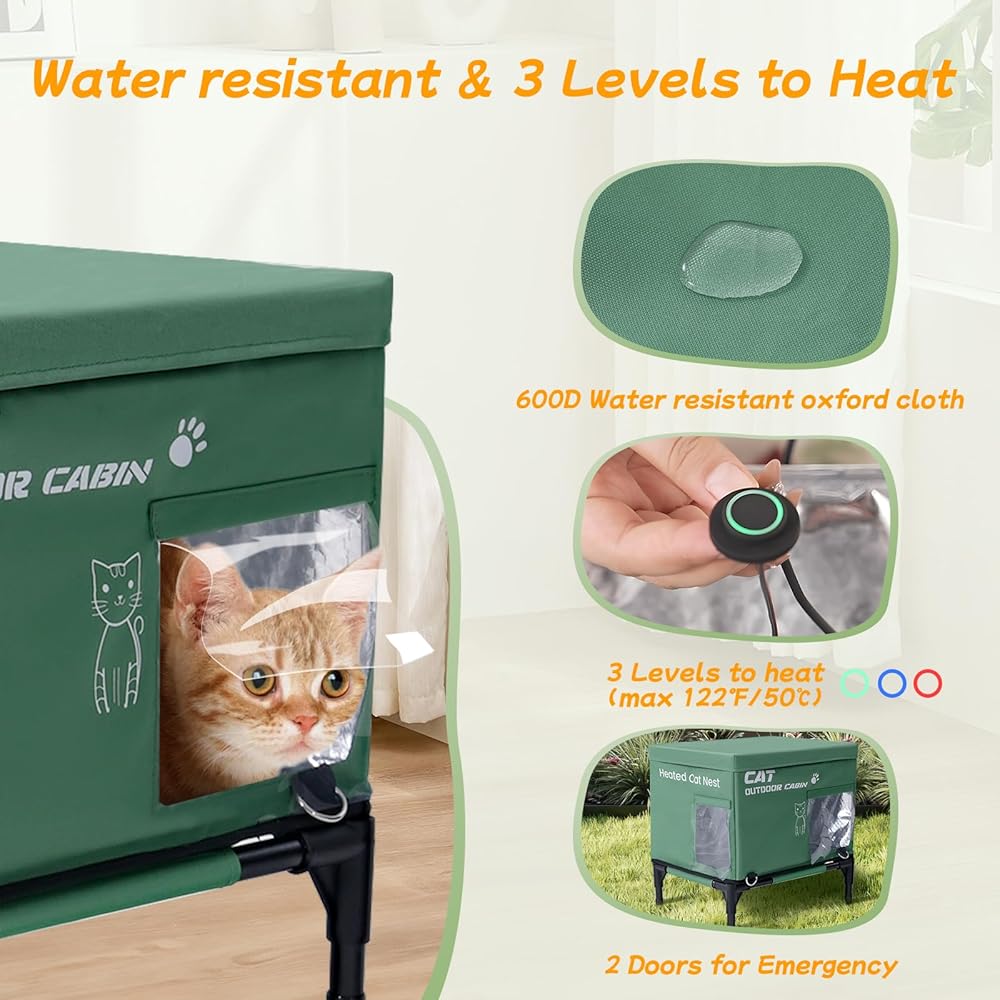 تسخين 3 مستويات وتدفئة سريعة: يتميز بيت القطط المسخن Meulbaty بلوحة تسخين مدمجة مع 3 إعدادات لدرجة الحرارة قابلة للتعديل: عالية ومتوسطة ومنخفضة، تصل إلى 122 درجة فهرنهايت (50 درجة مئوية)، مما يضمن دفئًا ومأوى مريح لقطتك
