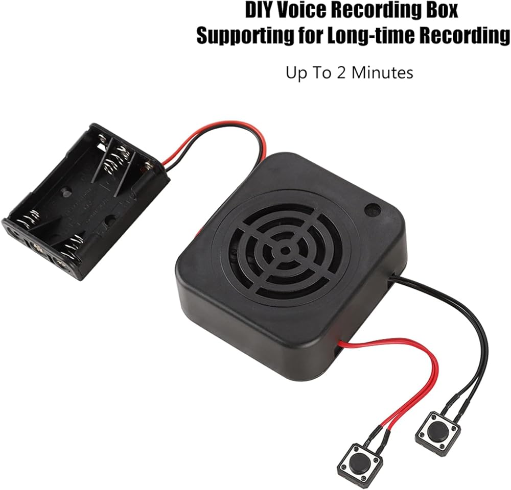 صندوق تسجيل صوتي، 2/4 دقيقة 3 وات صندوق تسجيل صوتي DIY وحدة تشغيل صندوق الرسائل صوت واضح وحدة تسجيل DIY للحيوانات المحشوة وصناديق الهدايا والحرف اليدوية (تسجيل لمدة دقيقتين)