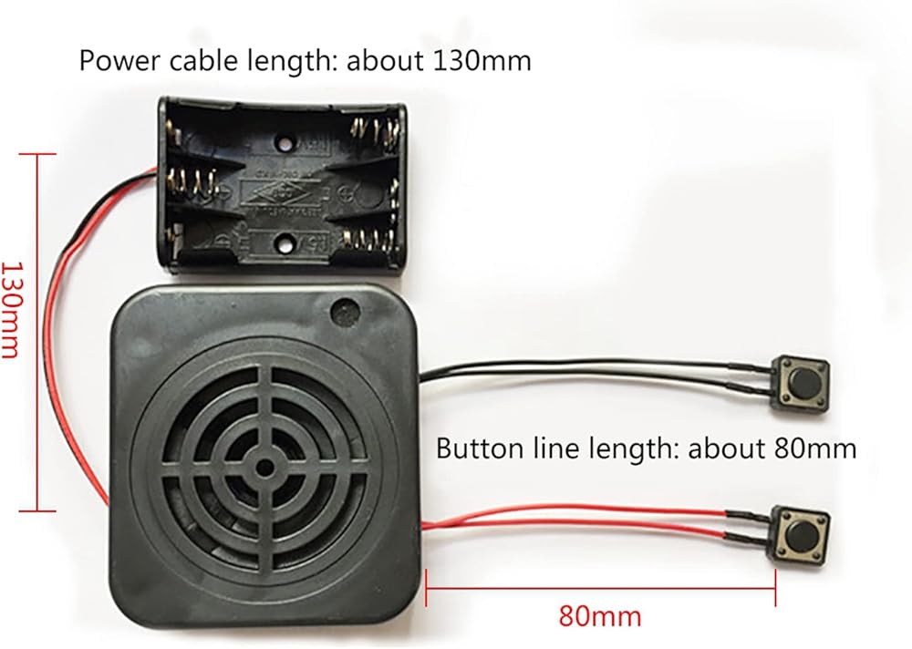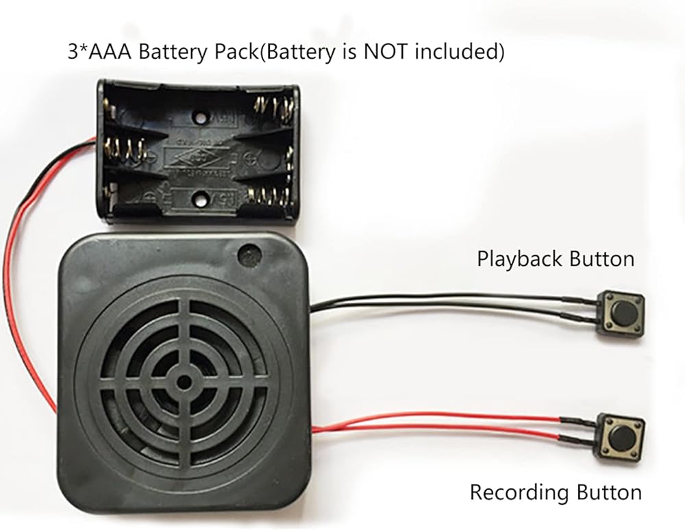 2 أزرار تحكم: يوجد زرين للتحكم، يُستخدم اللون الأحمر للتسجيل، ويستخدم اللون الأسود للتشغيل. صندوق التسجيل الصوتي 3 واط DIY هذا مخصص لإضافة لمسة شخصية إلى حيواناتك المحشوة أو الهدايا أو الألعاب
