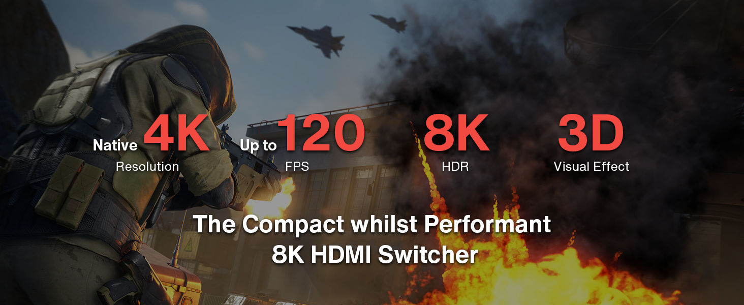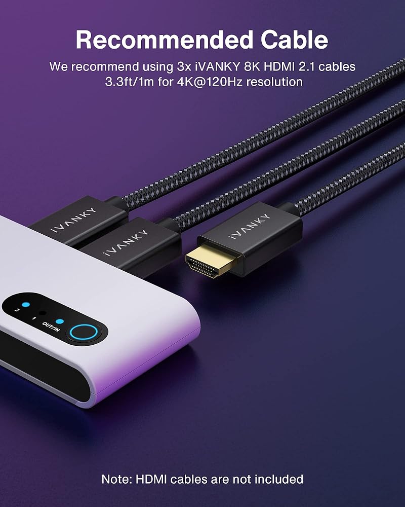 تجربة ألعاب لا مثيل لها بدقة 4K@120 هرتز: انغمس في عالم الألعاب النابض بالحياة باستخدام مفتاح iVanky 4K@120 هرتز HDMI، حيث تقفز كل التفاصيل من الشاشة بوضوح نابض بالحياة. استمتع بالمرئيات السلسة بمعدل 120 إطارًا في الثانية وتقنية HDR التي تعيد تعريف الانغماس. (يرجى التأكد من أن جميع الأجهزة والكابلات المتصلة متوافقة مع HDMI 2.1 للحصول على الأداء الأمثل. يوصى باستخدام كابل HDMI 2.1، بطول مقترح يبلغ 3.3 قدم للمدخلات و6.6 قدم للمخرجات.)