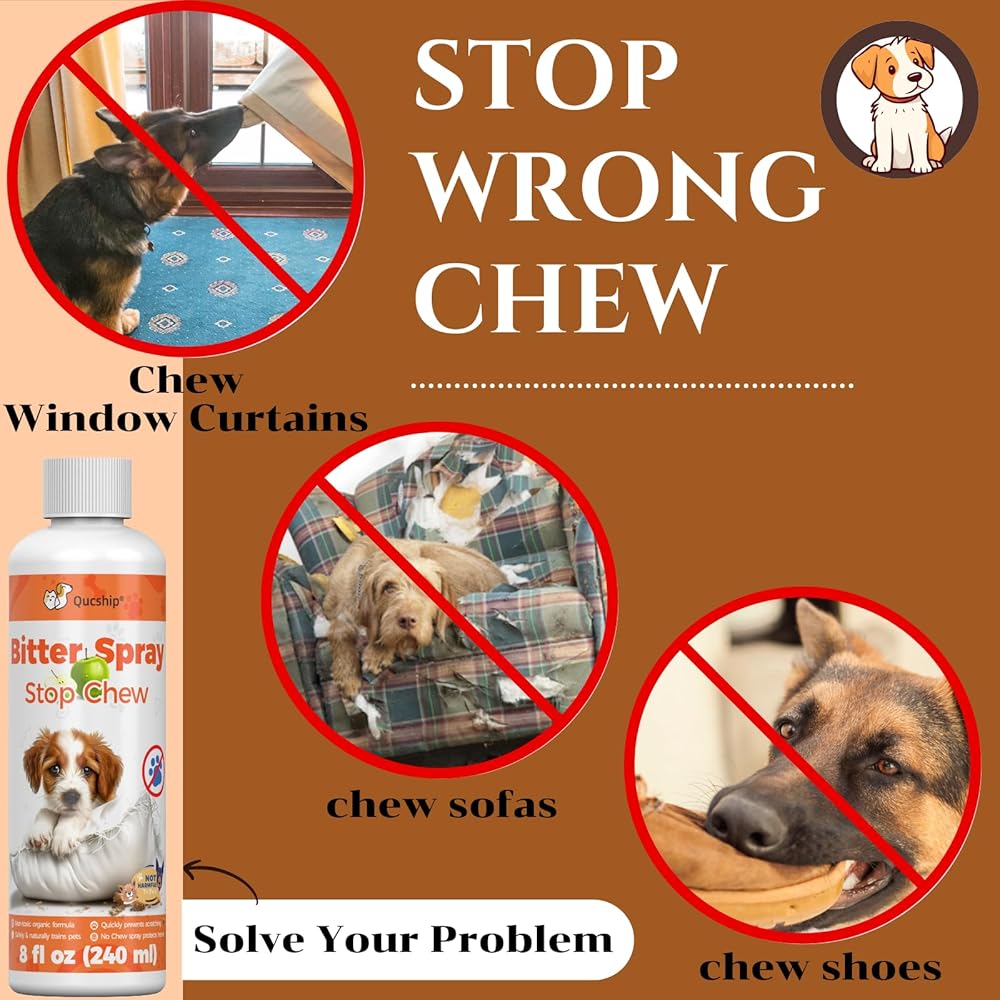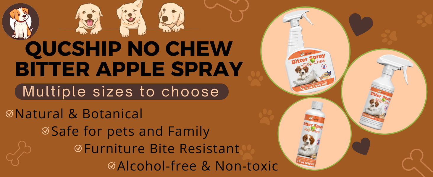 رذاذ التفاح المر الفاخر للكلاب من Qucship Dog | 8 أونصة من رذاذ التدريب الطبيعي الذي يساعد على عدم مضغ الكلاب | الكلاب لا تمضغ ولا تلعق | آمنة للحيوانات الأليفة والمنزل