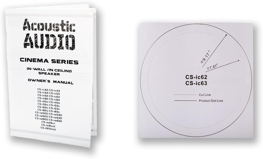 Acoustic Audio CS-IC63 Cinema Series 6.5" in-ceiling surround sound 3-way speakers are ideal for any home, office or entertainment area because they are designed with supreme performance in mind. Each speaker handles 300 watts of power and includes: a 6.5" Poly cone woofer for improved motion and higher bass response, a butyl rubber surround, a progressive spider for greater control and higher excursion capabilities, a poly mica midrange, a 13mm soft dome tweeter for detailed high frequencies and a 3-way passive crossover for greater fidelity. Spring loaded push terminals allow for easy connectivity and its low profile baffle housing was designed for simple installation and an improved frequency response. The white grill will coordinate well with any interior, or can be painted to match individual décor. Included is a cutout template to aid in the installation process and full instructions.