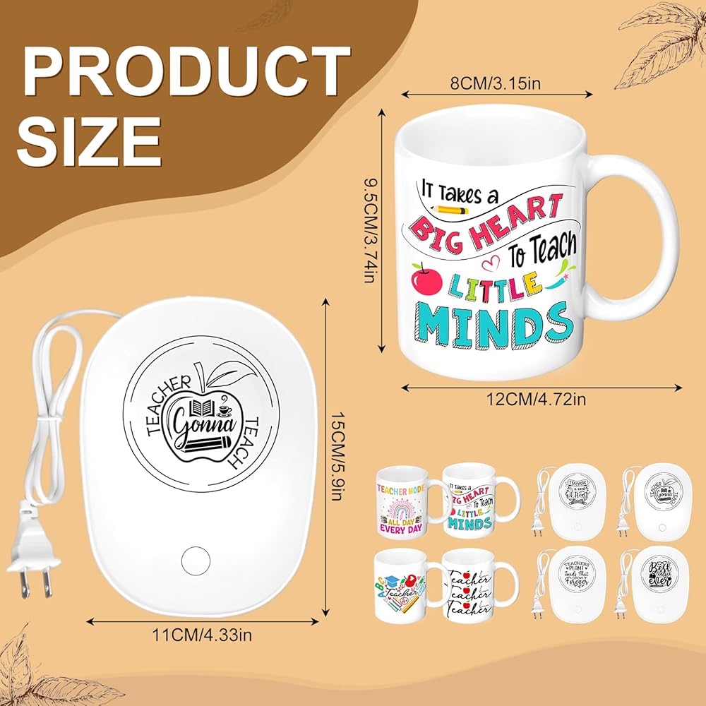 عبر عن امتنانك للمعلمين: تم تصميم كوب القهوة وسخان الأكواب الخزفية كهدية للمعلم بعناية بتصميم جميل وهادف بطابع المعلم، ومطبوع بالتفاح وأقلام الرصاص والقلوب والعبارات التحفيزية المتعلقة بالمعلمين والمزيد، مما يخلق هدية مثالية للمعلم كلاهما عملي ومعبر عن الامتنان