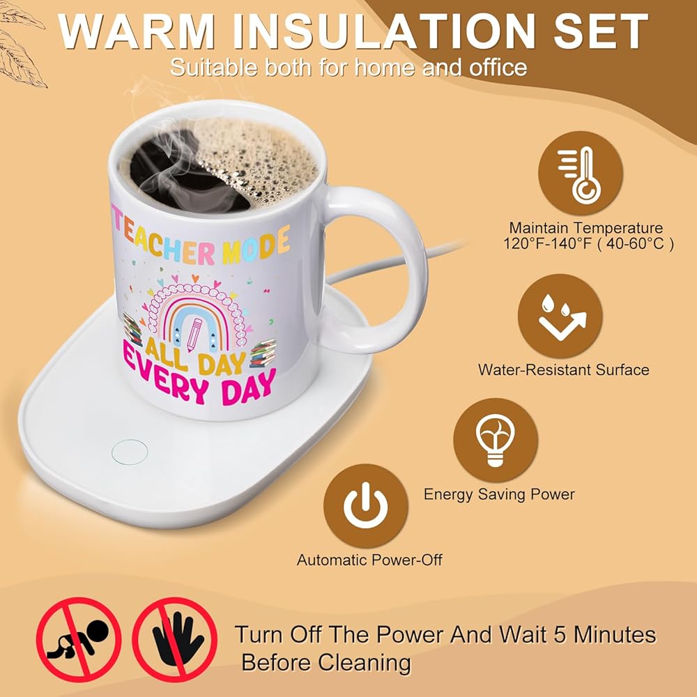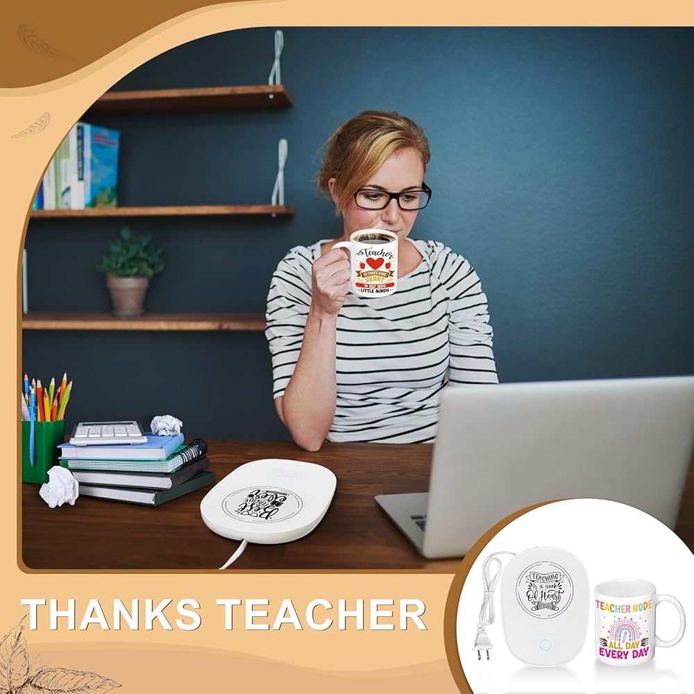 Honeydak 4 مجموعات هدايا المعلم للنساء القهوة أكثر دفئا مع مجموعة القدح المعلم القدح أكثر دفئا مع كوب أفضل المعلم من أي وقت مضى أكواب السيراميك مع وسادات ثرموستاتي إيقاف تلقائي لتقدير المعلم أسبوع عيد ميلاد