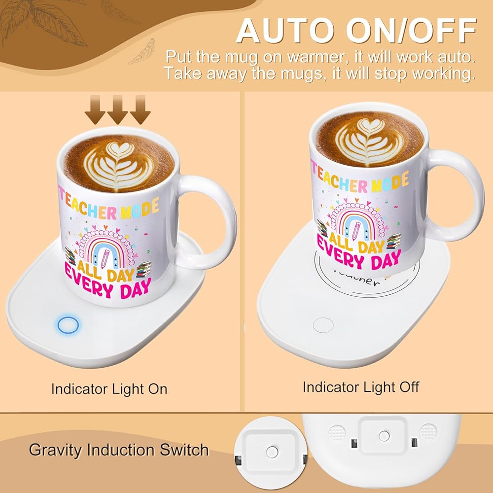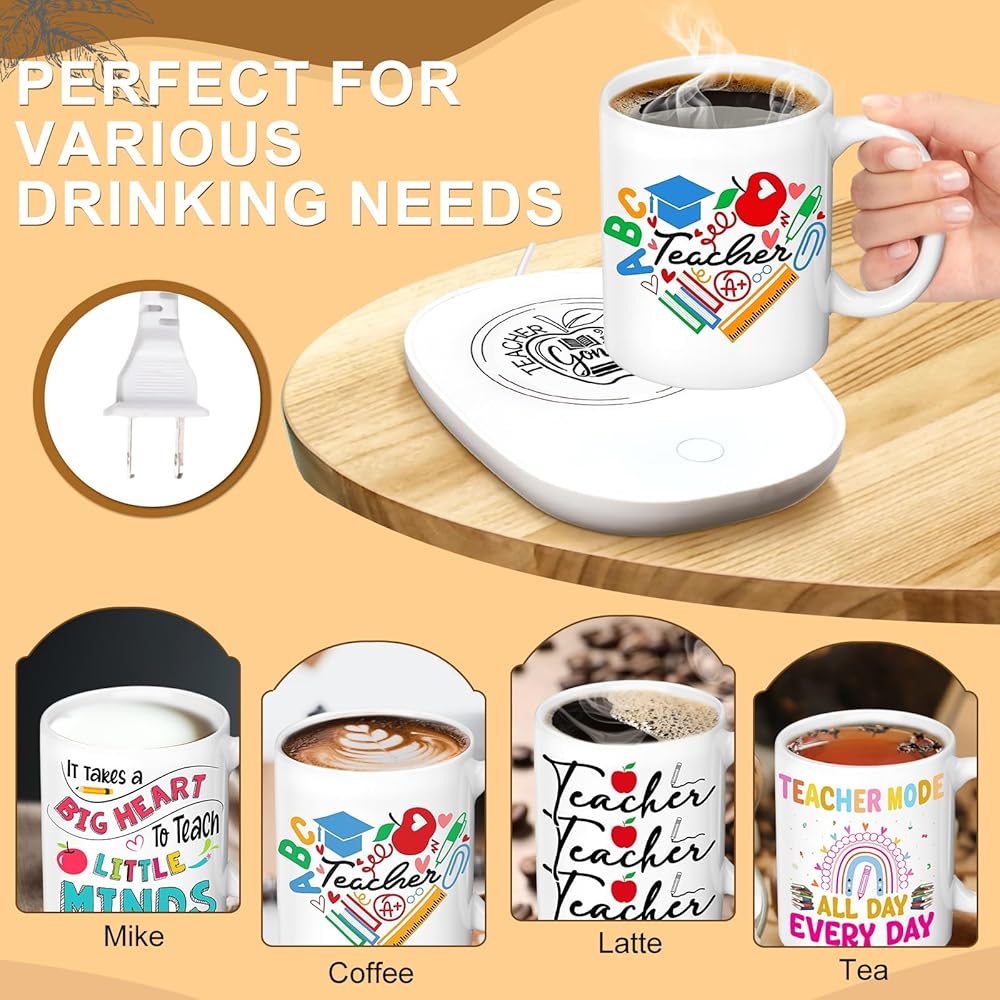 سهلة الاستخدام: يمكن لهدايا تقدير المعلم هذه حول سخان الكوب مع الكوب أن تحافظ بشكل طبيعي على درجة الحرارة 120 درجة فهرنهايت - 140 درجة فهرنهايت/ 40 درجة مئوية -60 درجة مئوية، ويمكنك أيضًا الحفاظ على درجة الحرارة عن طريق تغطية الغطاء (غير متضمن)، ولها جهاز آلي ميزة التشغيل/الإيقاف لأنها تستخدم تقنية الجاذبية الدقيقة، فقط ضع الكوب مع السائل فوق سخان الكوب، ثم قم بتوصيله، وسيعمل تلقائيًا ويتوقف تلقائيًا عند إزالته.
