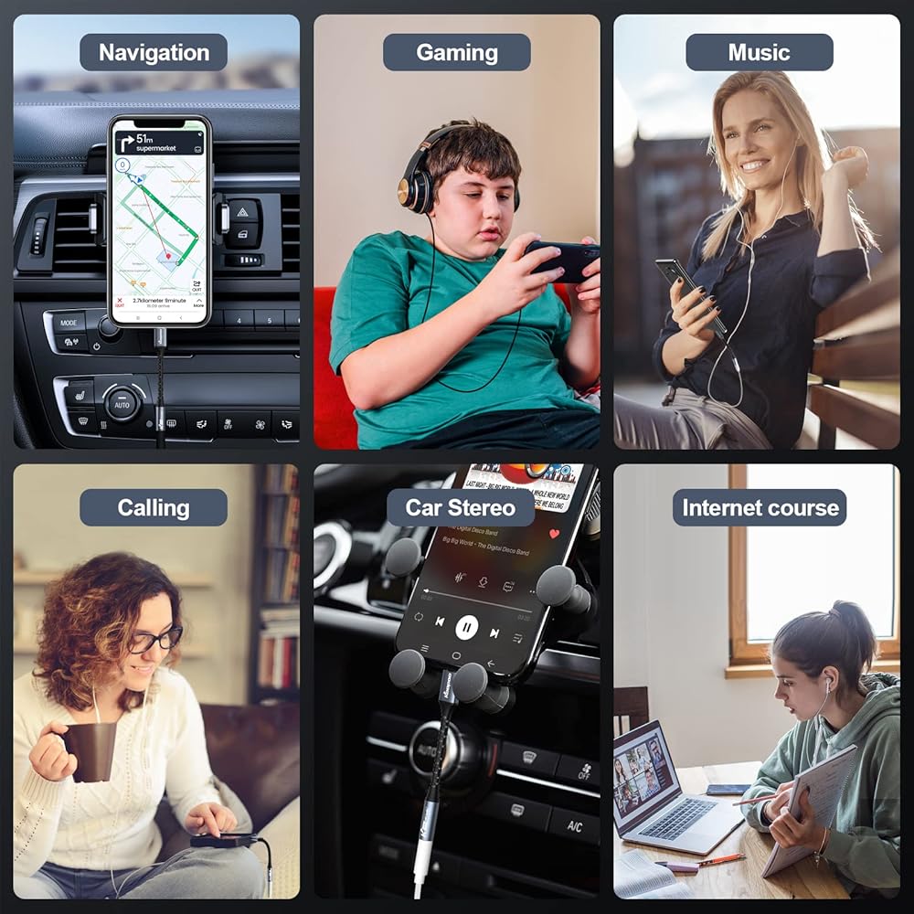 محول USB c إلى aux: تم تصميم aux إلى usb c لتحرير يديك. يمكن استخدام USB Type C AUX للاستماع إلى الموسيقى/ممارسة الألعاب/العمل عبر الإنترنت/التعلم عبر الإنترنت/الملاحة عند قيادة السيارة.