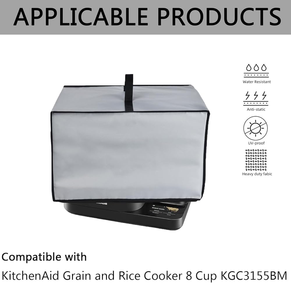 【PRESSURE COOKER COVER SIZE】Fits Slow Cooker up to(DxWxH) 11 x 18.5 x 9.1in(28 x 47 x 23cm) Compatible with KitchenAid Grain and Rice Cooker 8 Cup with Automatically Sensing Integrated Scale + Water Tank, KGC3155BM and other pressure cooker models.
