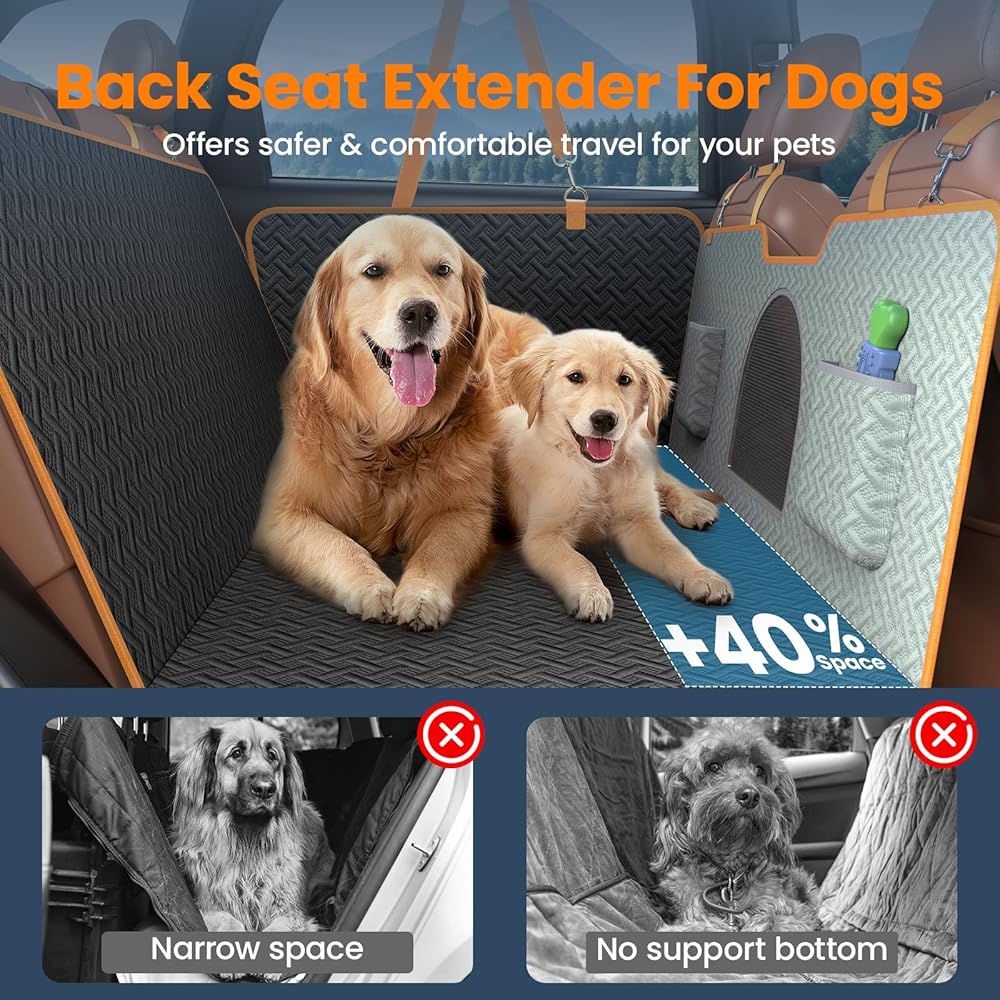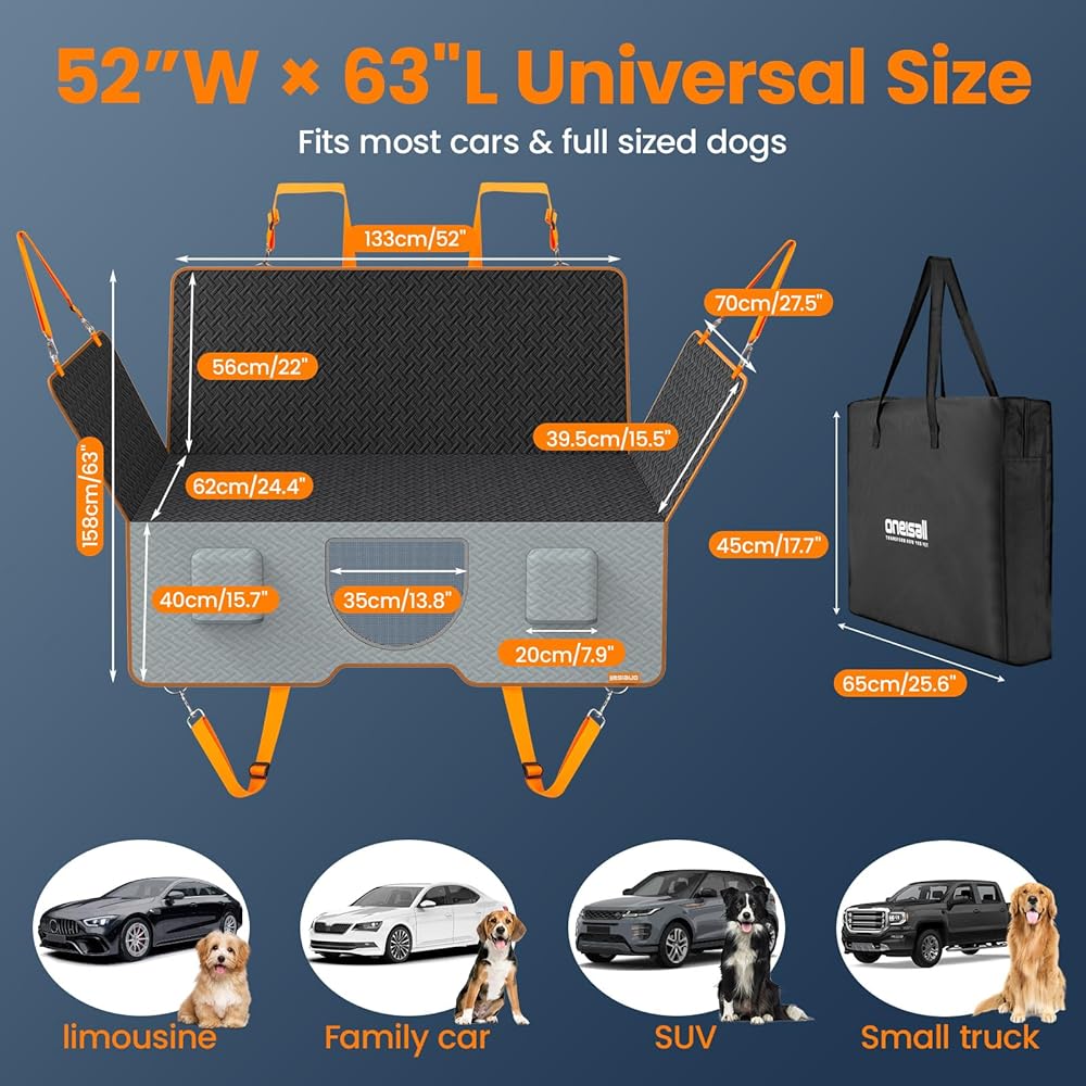موسع المقعد الخلفي من oneisall للكلاب، غطاء مقعد السيارة ذو القاعدة الصلبة للكلاب يحمل 500 رطل، سرير سفر قوي مقاوم للماء لحماية السيارة، أرجوحة للكلاب مع نافذة شبكية للسيارة، سيارات الدفع الرباعي، شاحنة صغيرة