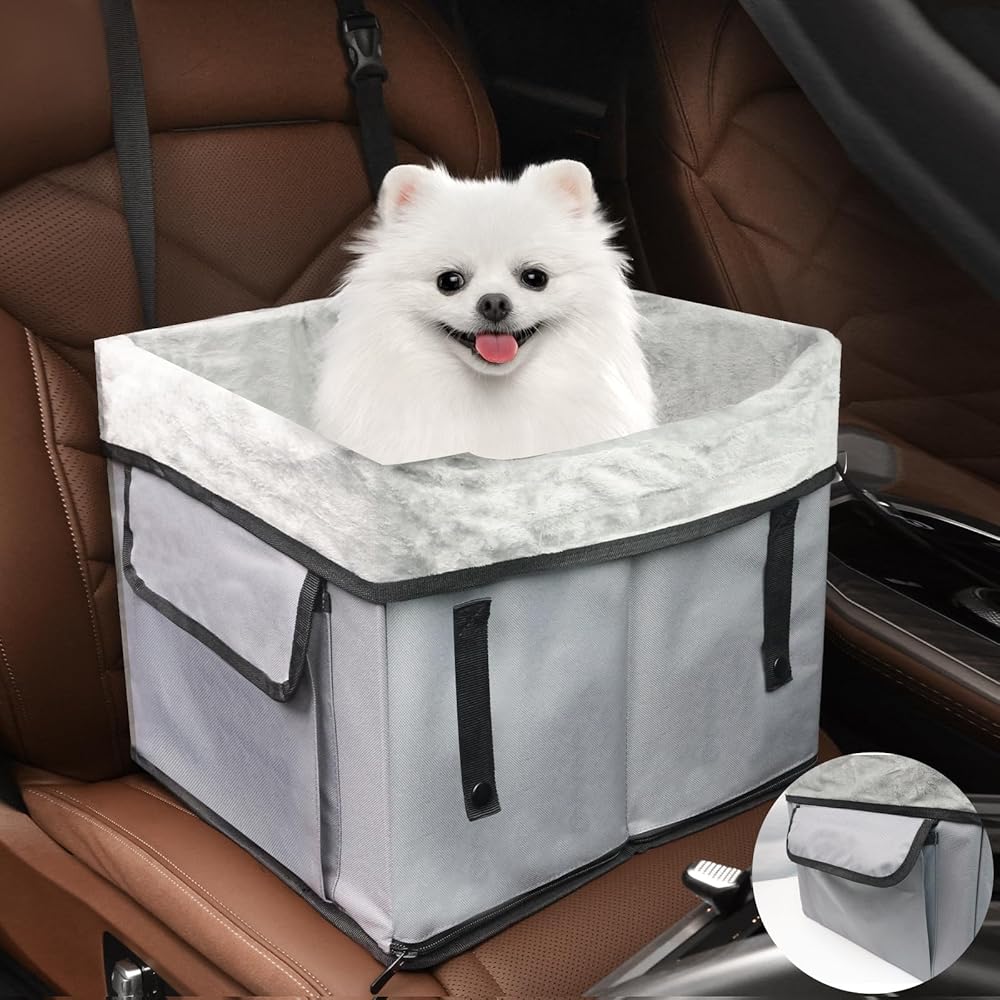 مقعد سيارة للكلاب الصغيرة من يونيس، مقعد سيارة معزز للكلاب قابل للغسل والفصل والمحمول مع مقود أمان مشبك، مقاعد سيارة للجراء مع طبقة سفلية قابلة للتخزين - يصل وزنها إلى 25 رطلاً
