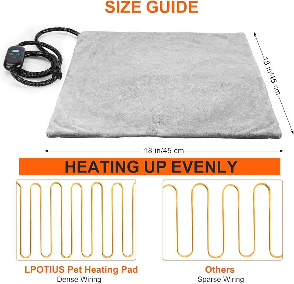 【Fast and Even Heating】- Our heating pad features densely packed heating wires that deliver more consistent and even warmth across the entire surface, ensuring your pet enjoys a cozy, uniformly heated spot every time.
