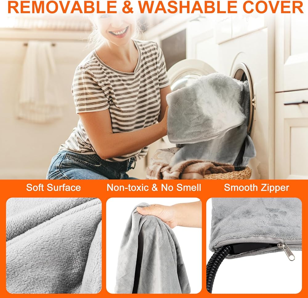 【Removable and Washable Cover】- Designed for easy maintenance, our heating pad comes with a removable and washable cover, allowing you to keep it fresh and clean with minimal effort. Simply detach the cover and toss it in the washing machine whenever needed, so your pet always has a cozy and hygienic space to relax.