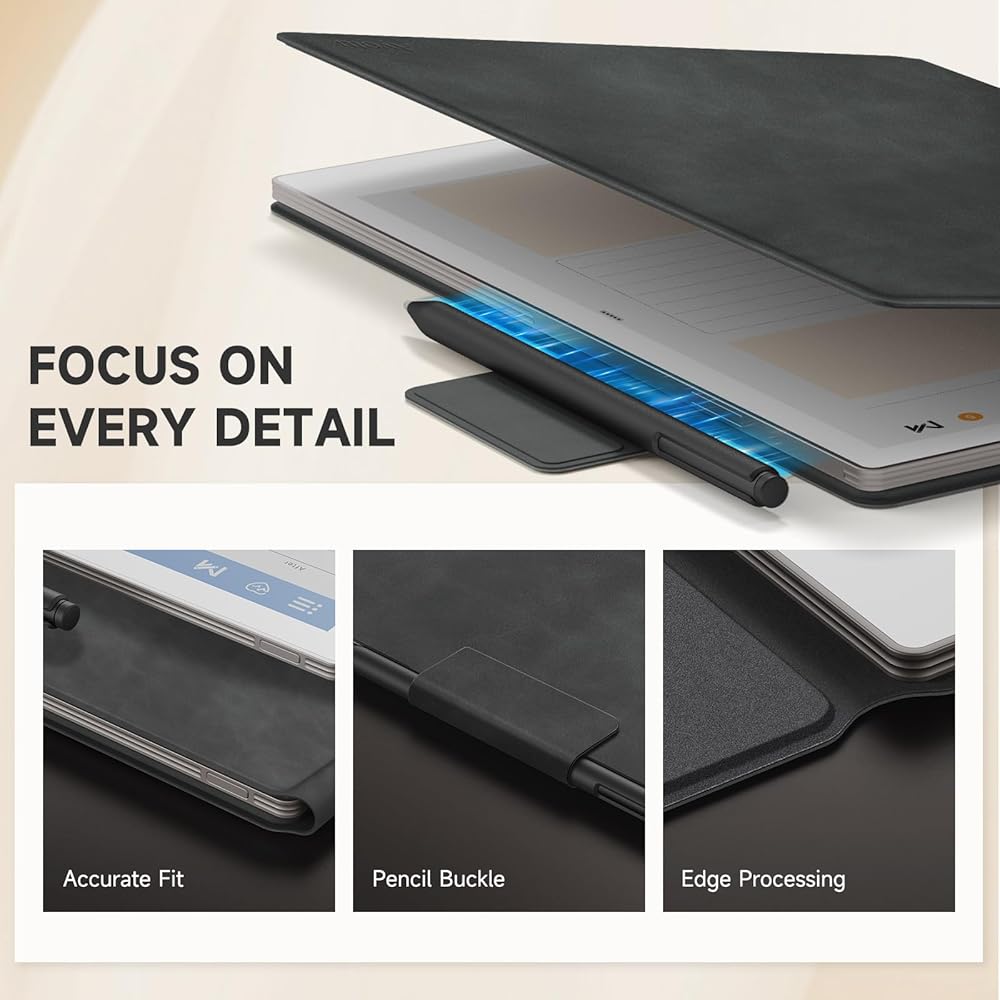 [التوافق]: تصميم خاص فقط لجهاز Remarkable Paper Pro مقاس 11.8 بوصة. فتحات دقيقة تناسب كل الزوايا. الوصول الكامل إلى جميع الوظائف. لا يؤثر على رؤية الشاشة/حساسية اللمس على الإطلاق (ملاحظة: ليس للكمبيوتر اللوحي الورقي الرائع مقاس 10.3 بوصة و القلم غير متضمن).