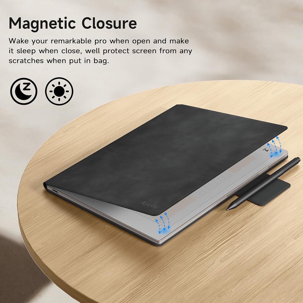 Ayotu Case for Remarkable Paper Pro, Premium PU Leather Book Folio with Pen-Buckle, Smart Magnetic Cover for Remarkable Paper Pro 11.8" Color Tablet, Bundle with Premium Membership (The Library)