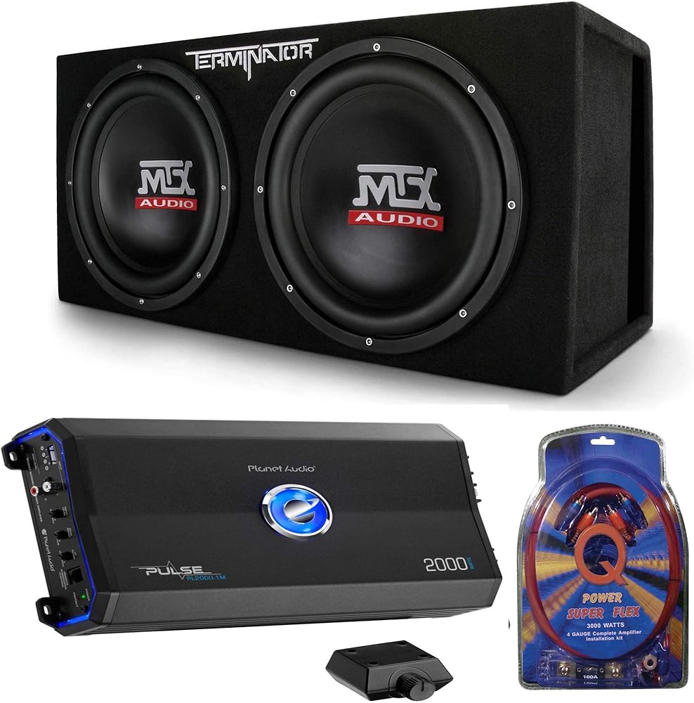 • COMPLETE SOUND PACKAGE: Upgrade your cars sound system with this complete package that includes MTX 12 inch dual loaded car subwoofer, a sub enclosure, Planet Audio monoblock amplifier and a 4 gauge amp installation wiring kit