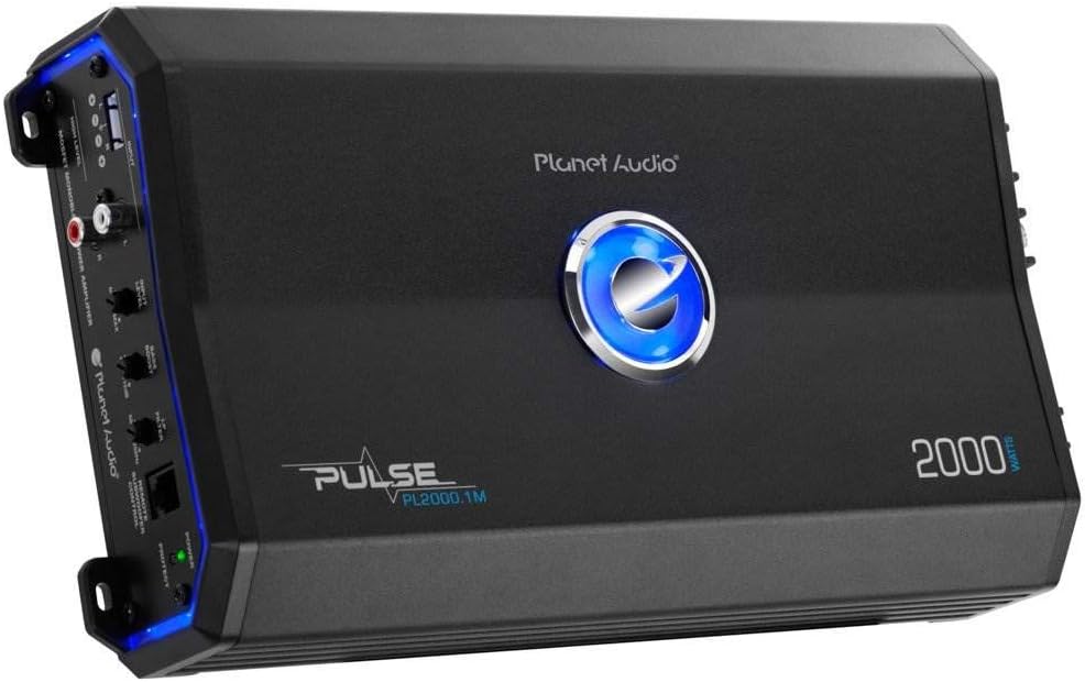 • CAR AMPLIFIER: Planet Audio Monoblock A/B MOSFET power Amplifier delivers 2000 watts maximum power, 1500 watts x 1 RMS @ 2 ohm and 750 watts x 1 RMS @ 4 ohm; Low pass filter: 50-250 Hz; Bass boost: Variable 0-12 dB; Dimensions: 12.75 x 7 x 2.39 inches; Remote control included