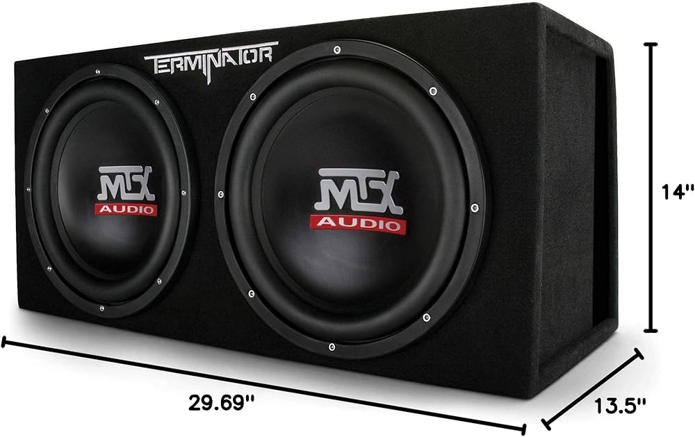 • CAR SUBWOOFER: The MTX Terminator series subwoofer system includes 2 subs, sub enclosure and a car amp; Boasts 1200 watts max power and 400 watts RMS; Features rubber surround, polypropylene cone and a 2-inch aluminum single 4 ohms voice coil