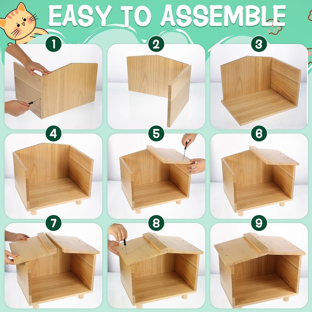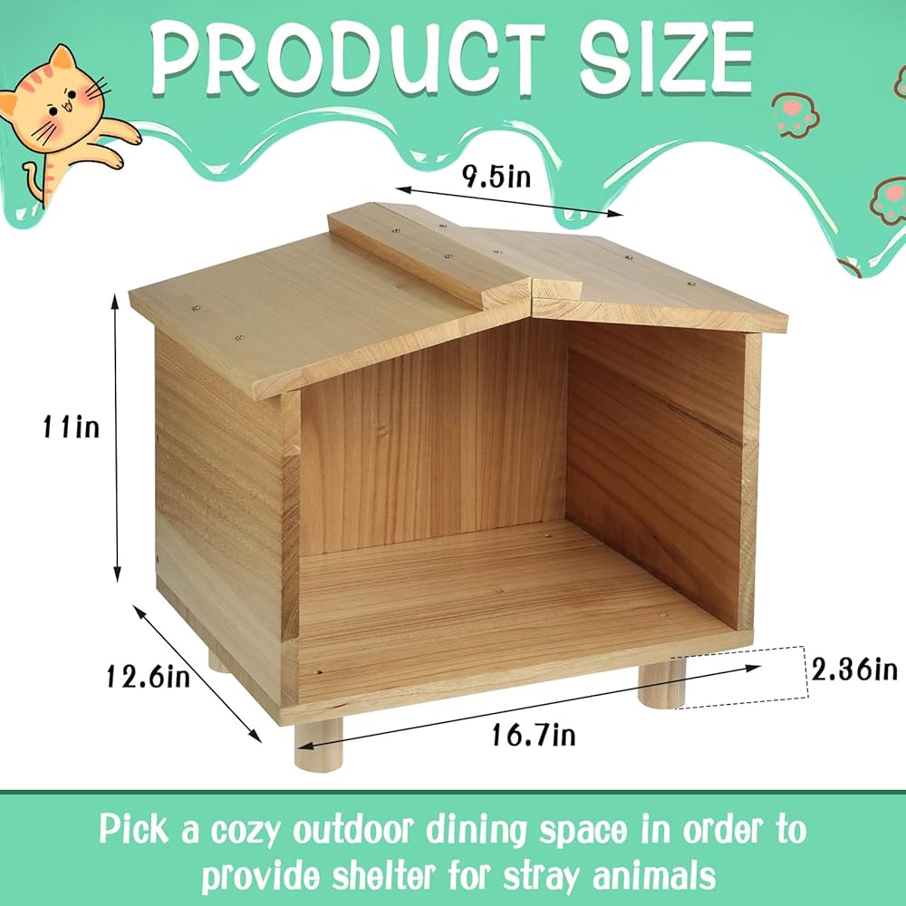 【سهلة التركيب】: تم تصميم وحدة تغذية القطط الخشبية هذه من أجل البساطة، مما يسمح بالتجميع السريع دون الحاجة إلى أدوات معقدة. يمكنك بسهولة إعداد وحدة تغذية القطط الخارجية وتزويد قطتك بمساحة مريحة لتناول الطعام في الهواء الطلق في أي وقت من الأوقات.