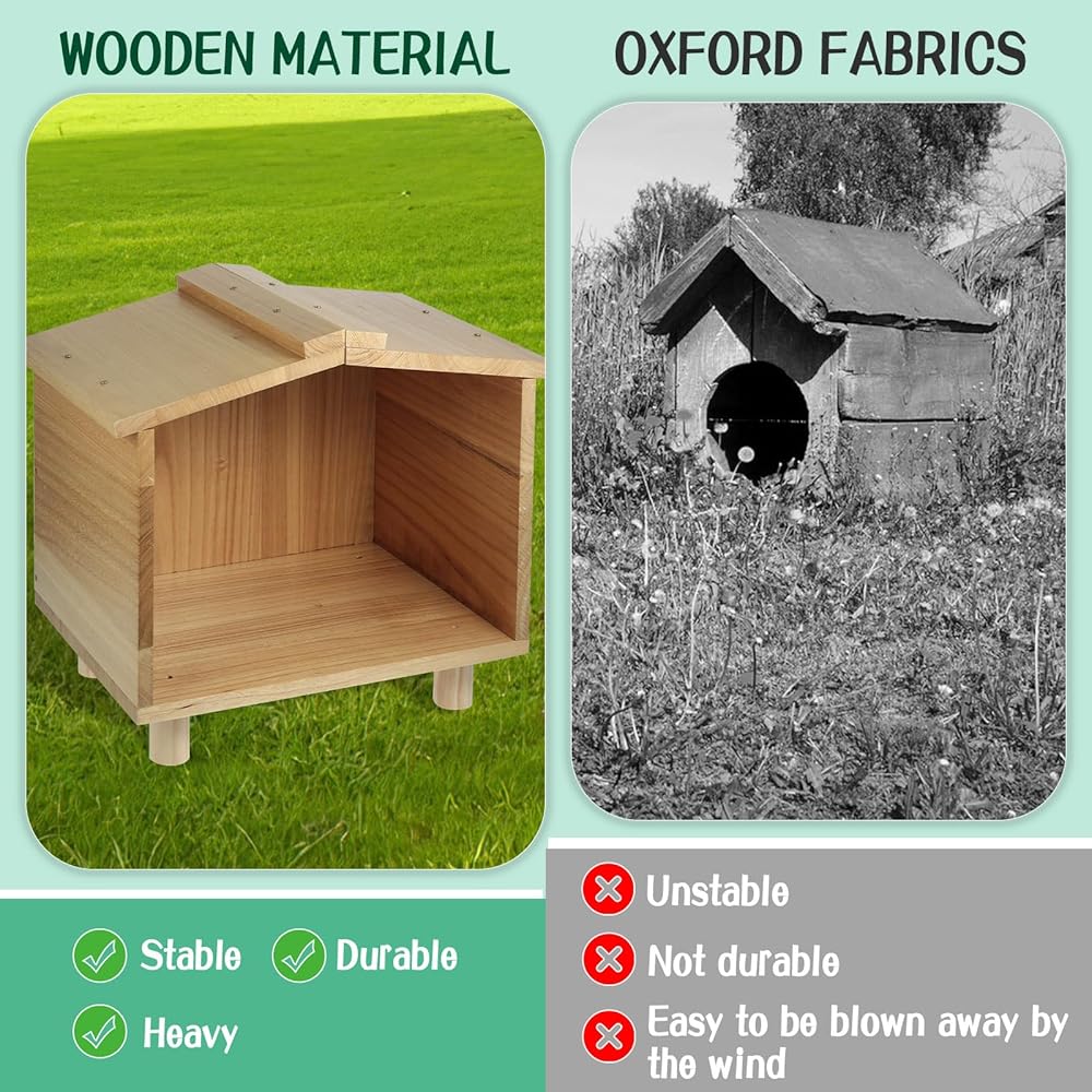 【مادة عالية الجودة】: بيت التغذية الخشبي للقطط في الهواء الطلق مصنوع من خشب عالي الجودة، وهو قوي ومتين لضمان الاستخدام طويل الأمد. المواد الخشبية ليست جميلة فحسب، ولكنها تمتزج أيضًا بشكل مثالي مع البيئة الطبيعية، مما يضيف الدفء إلى مساحتك الخارجية.
