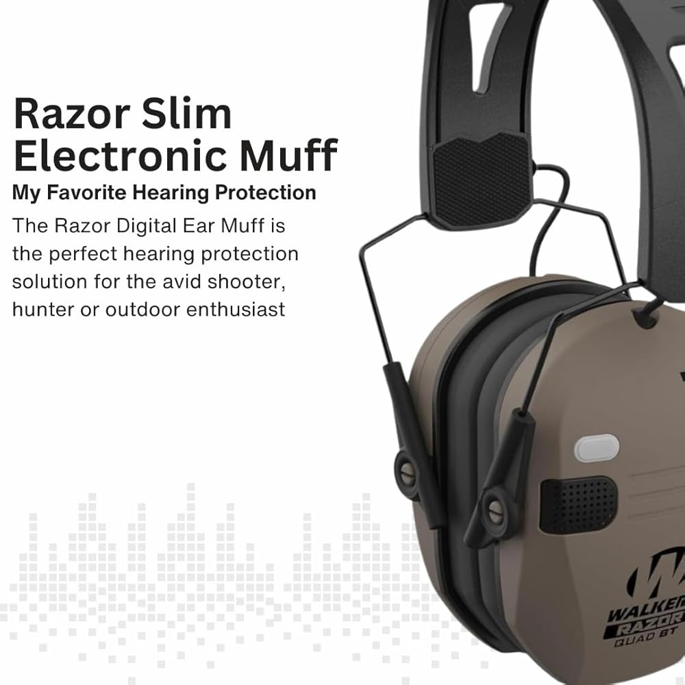 Walker's Razor Slim Quad Electronic Earmuffs with Ultra Low Profile Ear Cups (Flat Dark Earth)