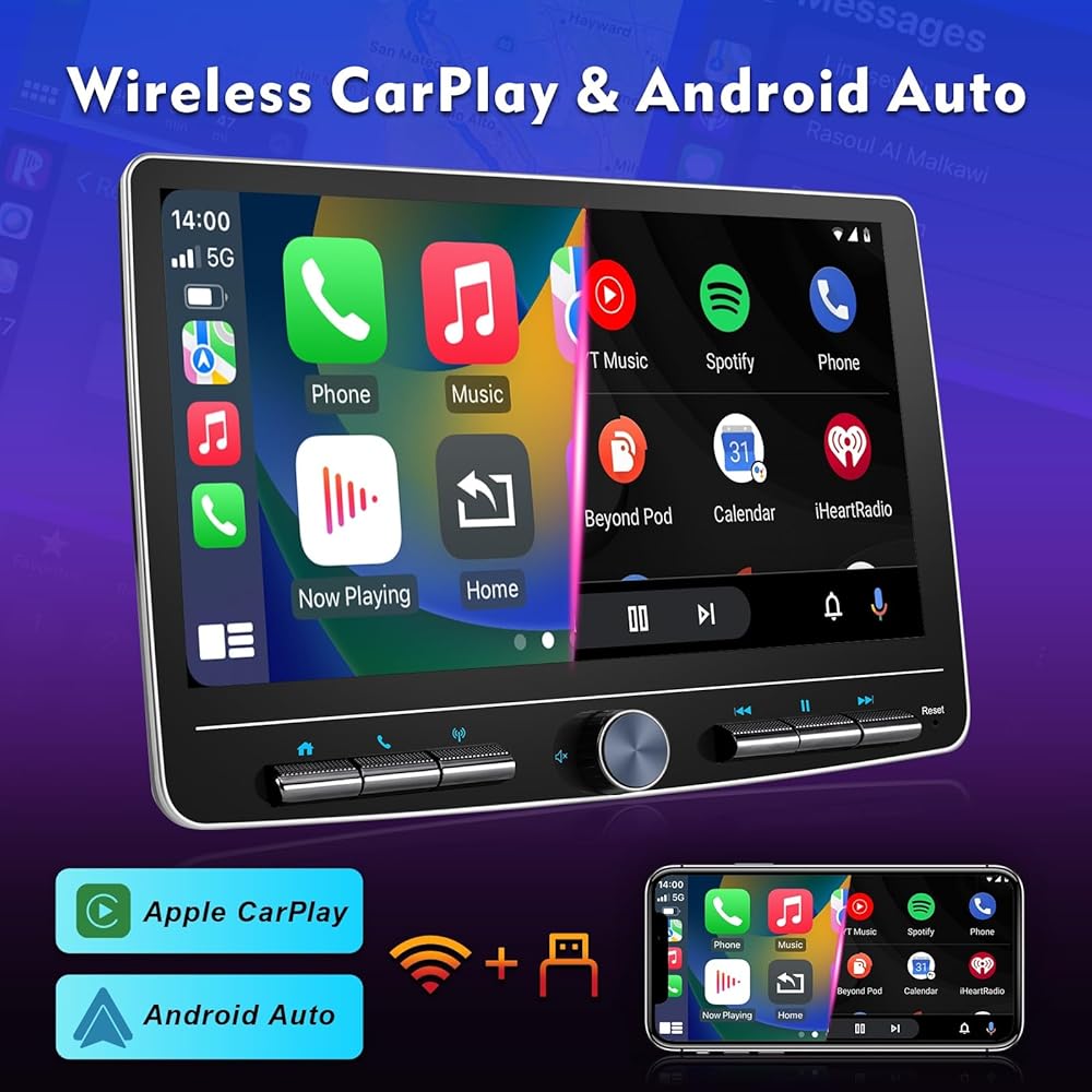 🚗【يدعم نظام Android Auto اللاسلكي وAndroid Auto السلكي】 قم بتوصيل هاتفك الذكي الذي يعمل بنظام Android بشاشة تشغيل السيارة المزدوجة عبر Android Auto واستمتع بالاتصال والتحكم السلس بهاتفك في السيارة. باستخدام Google_Assistant، يمكنك إجراء المكالمات واستخدام نظام تحديد المواقع العالمي (GPS) والاستماع إلى الموسيقى وما إلى ذلك. ومن خلال التحكم بدون استخدام اليدين، يمكنك الاستمرار في التركيز على الطريق والقيادة بأمان.