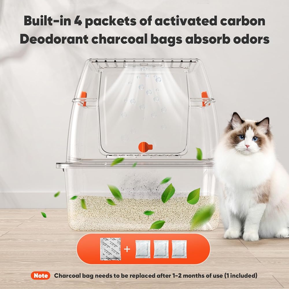 【حجم كبير، سعة عالية】يبلغ حجم صندوق فضلات القطط المغلق الكبير للغاية 23.6 بوصة × 15.7 بوصة × 15.7 بوصة ويوفر مساحة واسعة للقطط للقيام بأعمالها بشكل مريح. إنه مثالي للقطط الكبيرة التي يصل وزنها إلى 30 رطلاً ويقدم تبلغ سعته أكثر من 25 لترًا، مما يضمن مساحة نظيفة لمدة 15-30 يومًا دون أي متاعب. يعد صندوق فضلات القطط الكبير ذو الزاوية الكبيرة هذا الخيار الأمثل لأولئك الذين يبحثون عن مكان متين ومريح الحل لأصدقائهم القطط