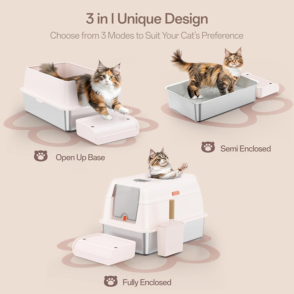 【حاوية صندوق فضلات القطط المصممة بشكل مبتكر】تتميز حاوية صندوق فضلات القطط ذات القلنسوة المصممة بشكل مبتكر بنظام وحدات 3 في 1 سهل التجميع، مما يوفر تكوينات مغلقة وشبه مغلقة لتلبية الاحتياجات المختلفة. يخلق الإعداد المغلق مساحة خاصة لقطتك، ويحتوي بشكل فعال على الفضلات والروائح. وفي الوقت نفسه، فإن الخيار شبه المغلق يجذب القطط التي تفضل المزيد من المساحات المفتوحة ويجعل عملية التنظيف أسهل على أصحابها.